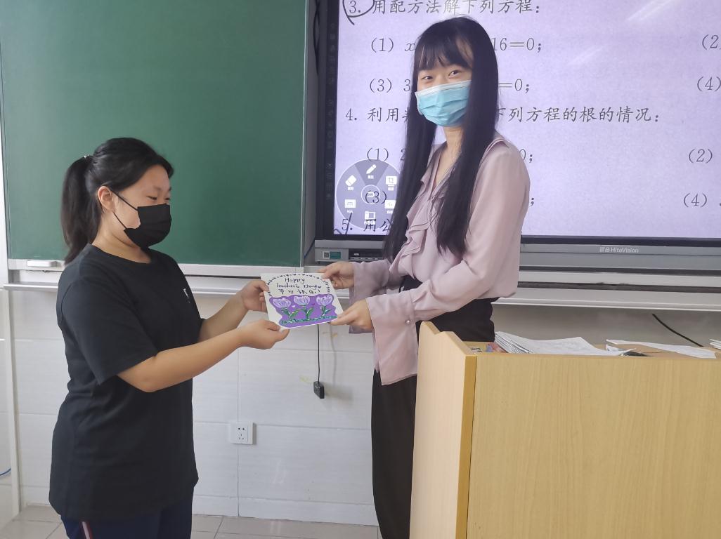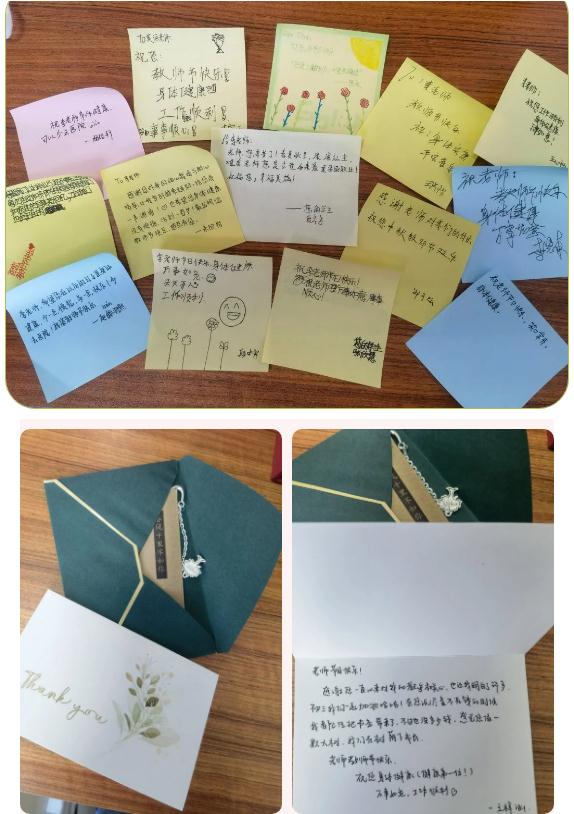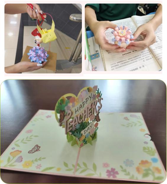 今年的教师节恰逢我们的传统节日中秋节,双节合一。9月9日的校园里孩子们自发地提前给老师们送上节日的祝福。校园里到处都能听到“老师,教师节快乐!孩子们通过在黑板上绘制海报、制作手工花、书写贺卡等形式表达对老师节日的问候。