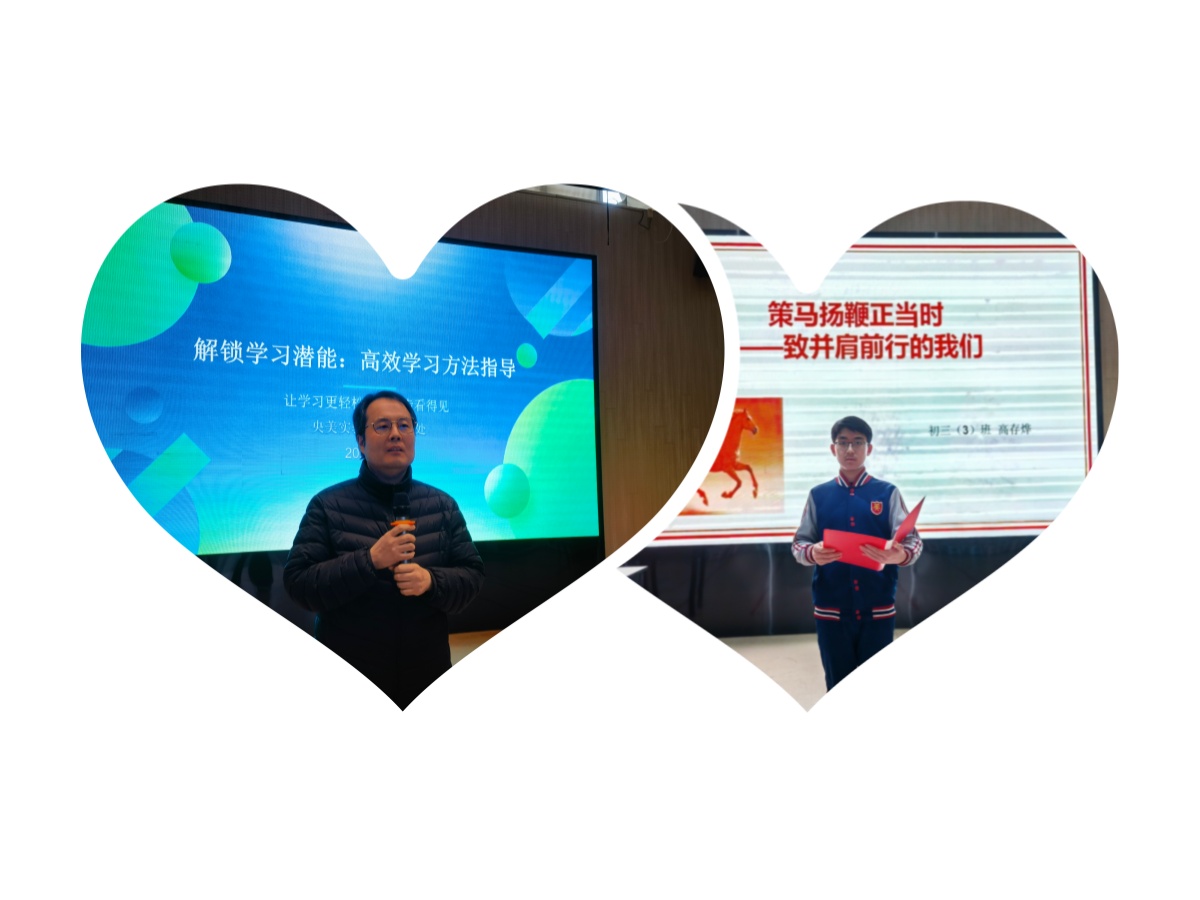 以梦为马,不负韶华。初三年级优秀学生代表高存烨分享成长感悟,号召全体初三学子明确目标、坚定信念、勤奋笃学、团结协作,以昂扬姿态高效备考,在中考中绽放光彩、实现梦想。