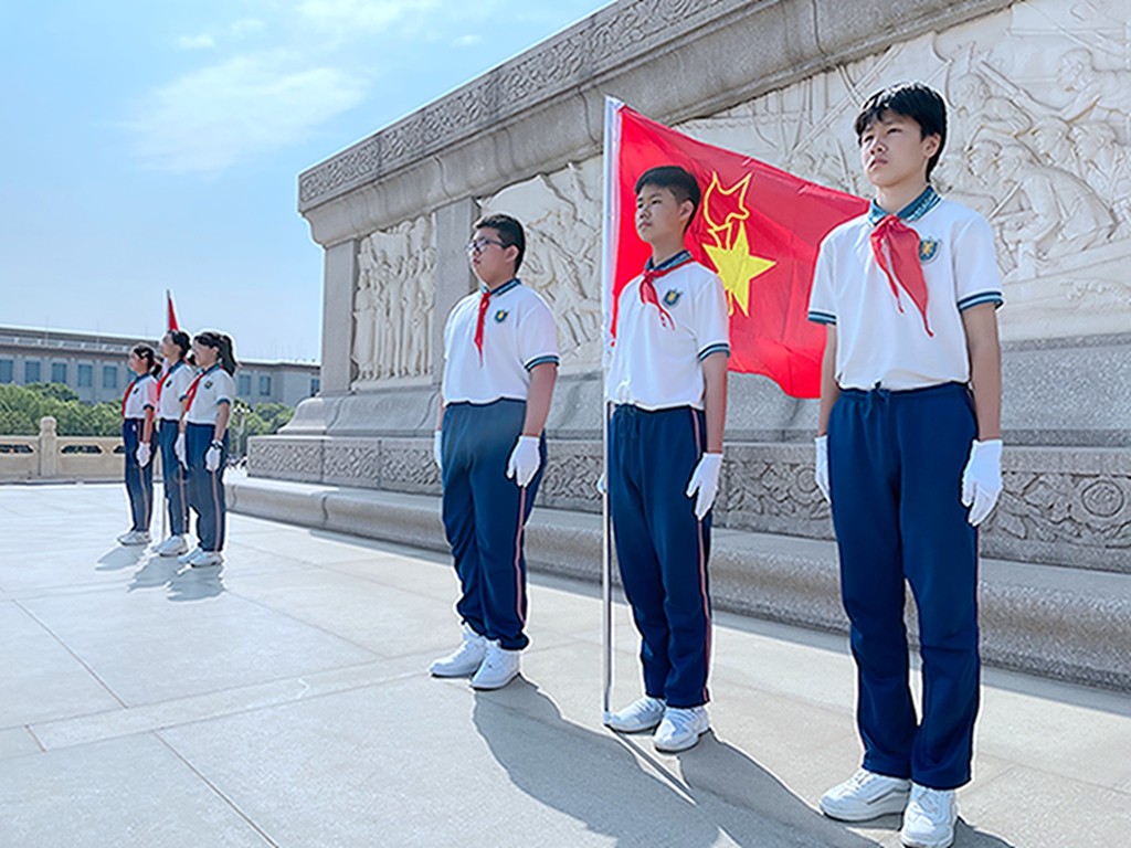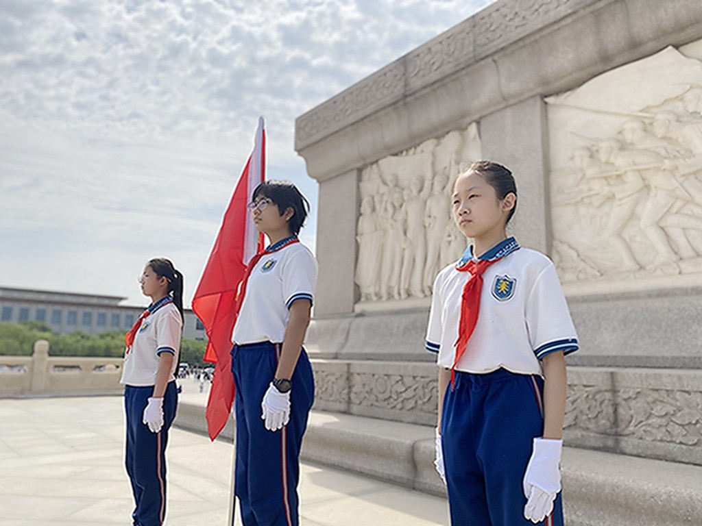永远跟党走——央美实验学校少先队员站少年先锋岗