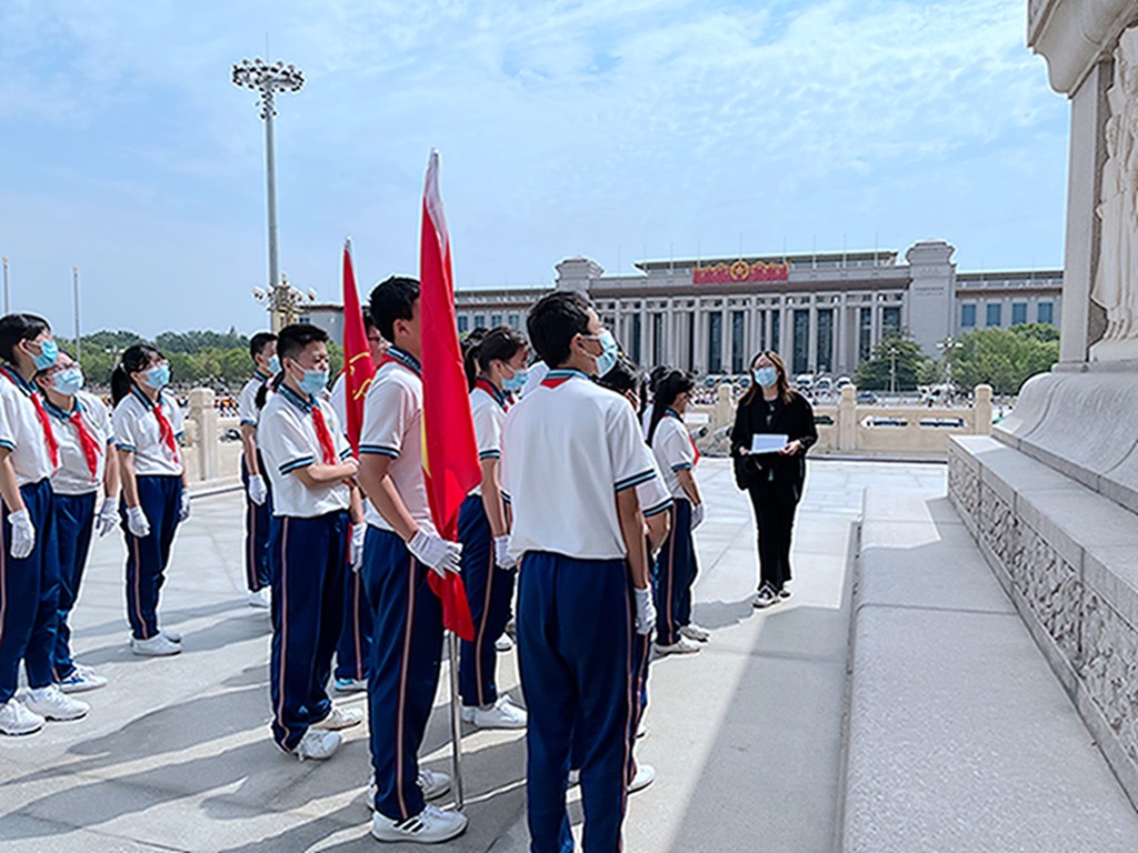 练习过程中,校医石海英老师对学生进行安全教育,历史张紫璇老师带领同学们仔细认真地学习人民英雄纪念碑上浮雕的内容,校党总支李剑锋书记对同学们进行动员,激励大家要以新时代首都少先队员的优秀形象和精神风貌出色的完成此次终生难忘的光荣任务。