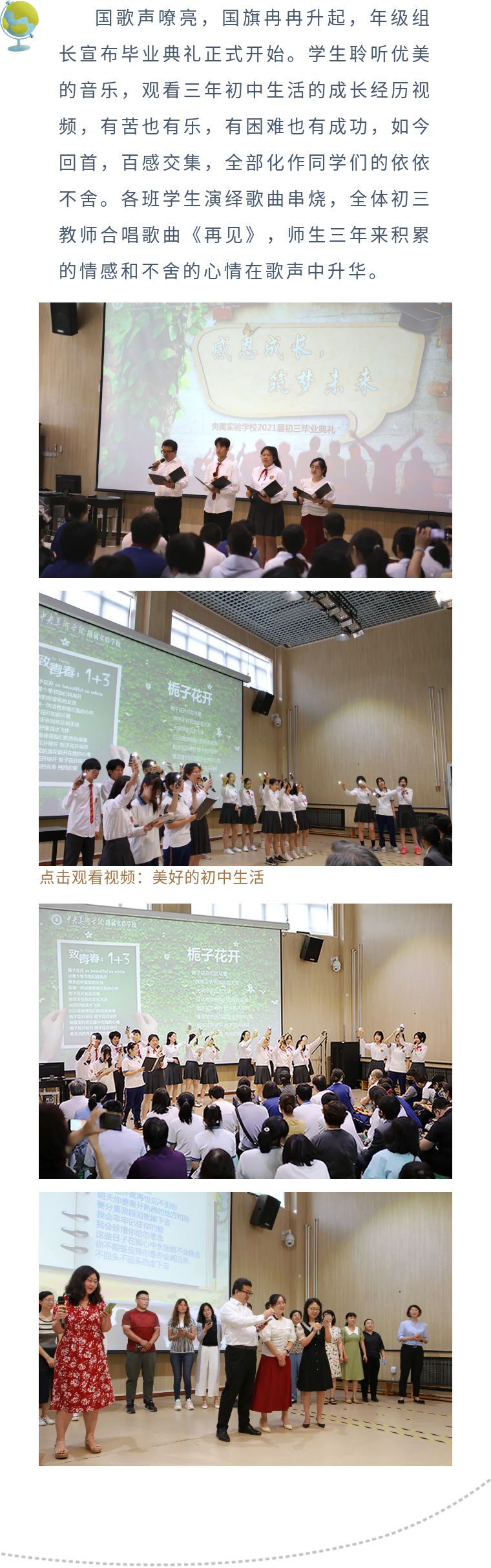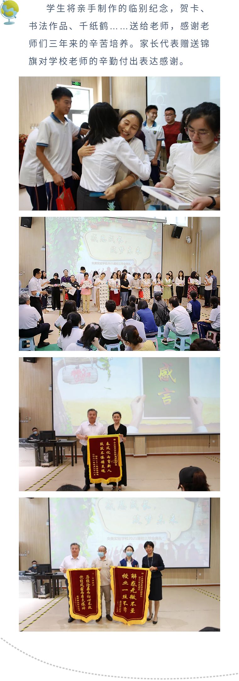 同学们将离开母校开始新一阶段的学习,而老师们也将承接新一届学生的教育教学工作,三年来的情谊将永远留存在大家心中,永远激励大家奋步向前!
