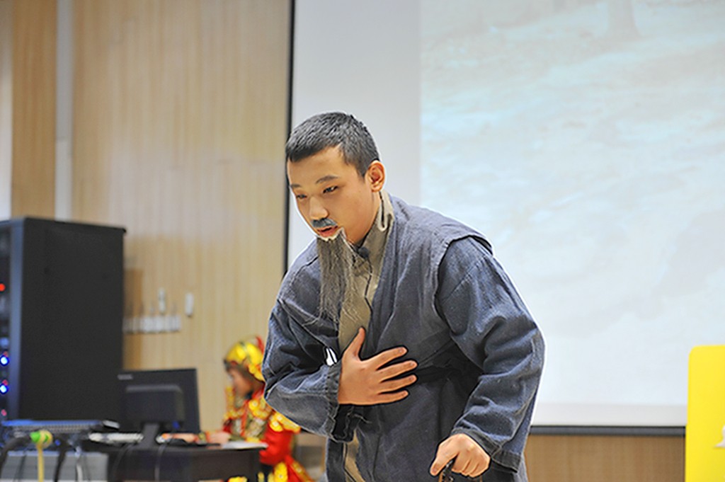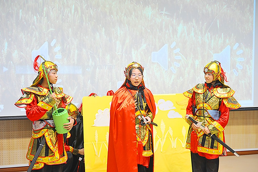 2020年12月29日下午,央美实验学校初中部有一场欢快热烈、激情飞扬的英语戏剧盛宴,为学生和老师们带来了视觉听觉的享受。首先是初中一年级学生的音诗画表演,中外学生用流畅的英语和日语通过配乐朗诵、独唱、合唱、舞蹈等等多种形式表达了感恩父母、感恩老师的美好感情,表演结束时孩子们用自己课余时间精心制作的手工小礼品赠送给老师。5名学生的英语配音表演——《后妈们的茶话会》,孩子们穿上了欧洲古典宫廷服装,摇曳的长裙、精致的妆容、流利清晰的英语,还有夸张而又逼真的表情,把欧洲贵妇人的生活演绎得惟妙惟肖。学生戏剧社团将花木兰的故事再次搬上舞台,孩子们扮演的身着中国古代铠甲头盔的戍边将士,在战场上和敌人英勇交战,那种英姿飒爽的气势配上英语对白以及一些搞笑的情节,让我们体验到戏剧舞台的独特魅力。活动深深吸引了师生,热烈的掌声就是对孩子们戏剧表演成功的最好诠释。