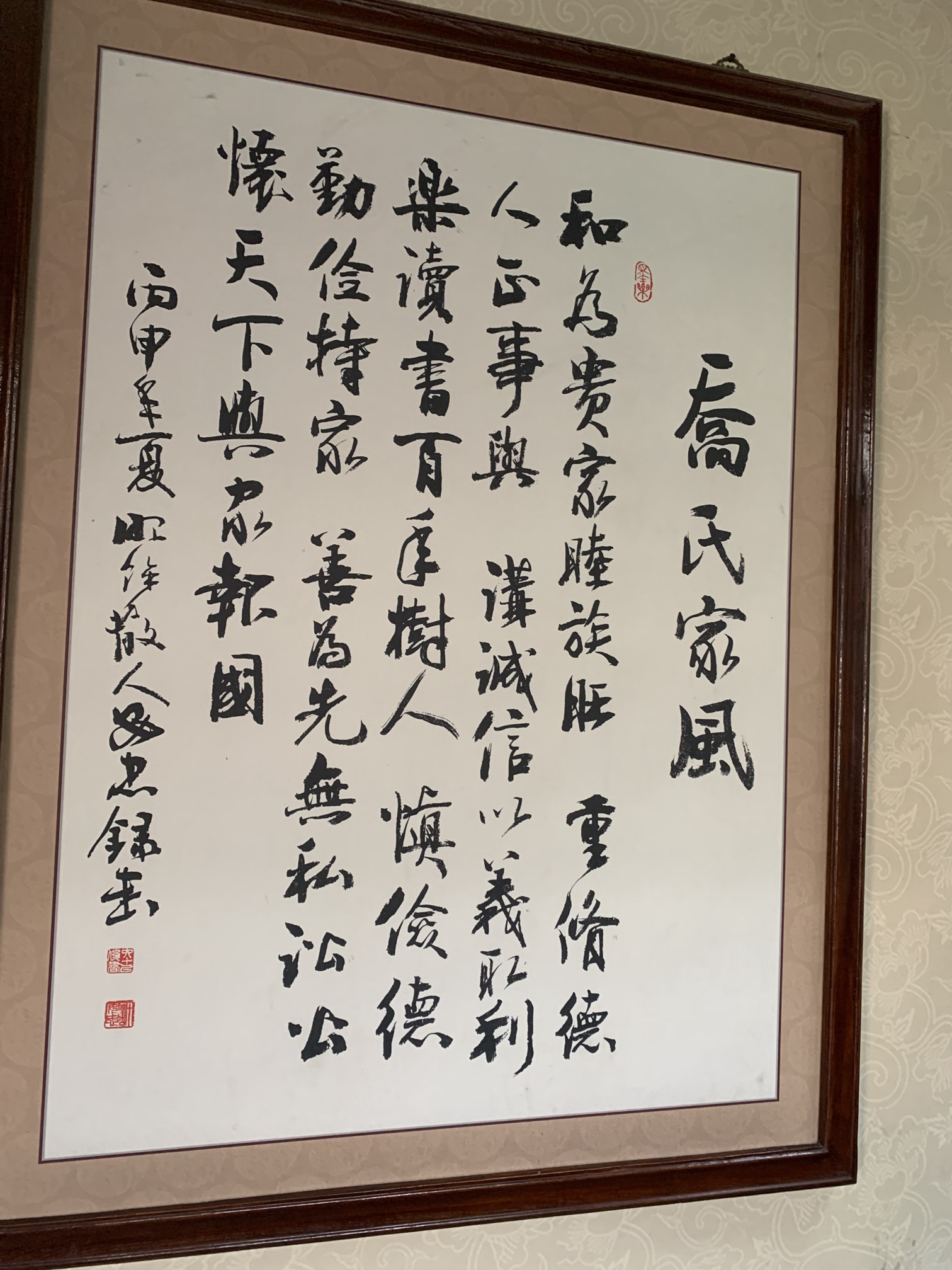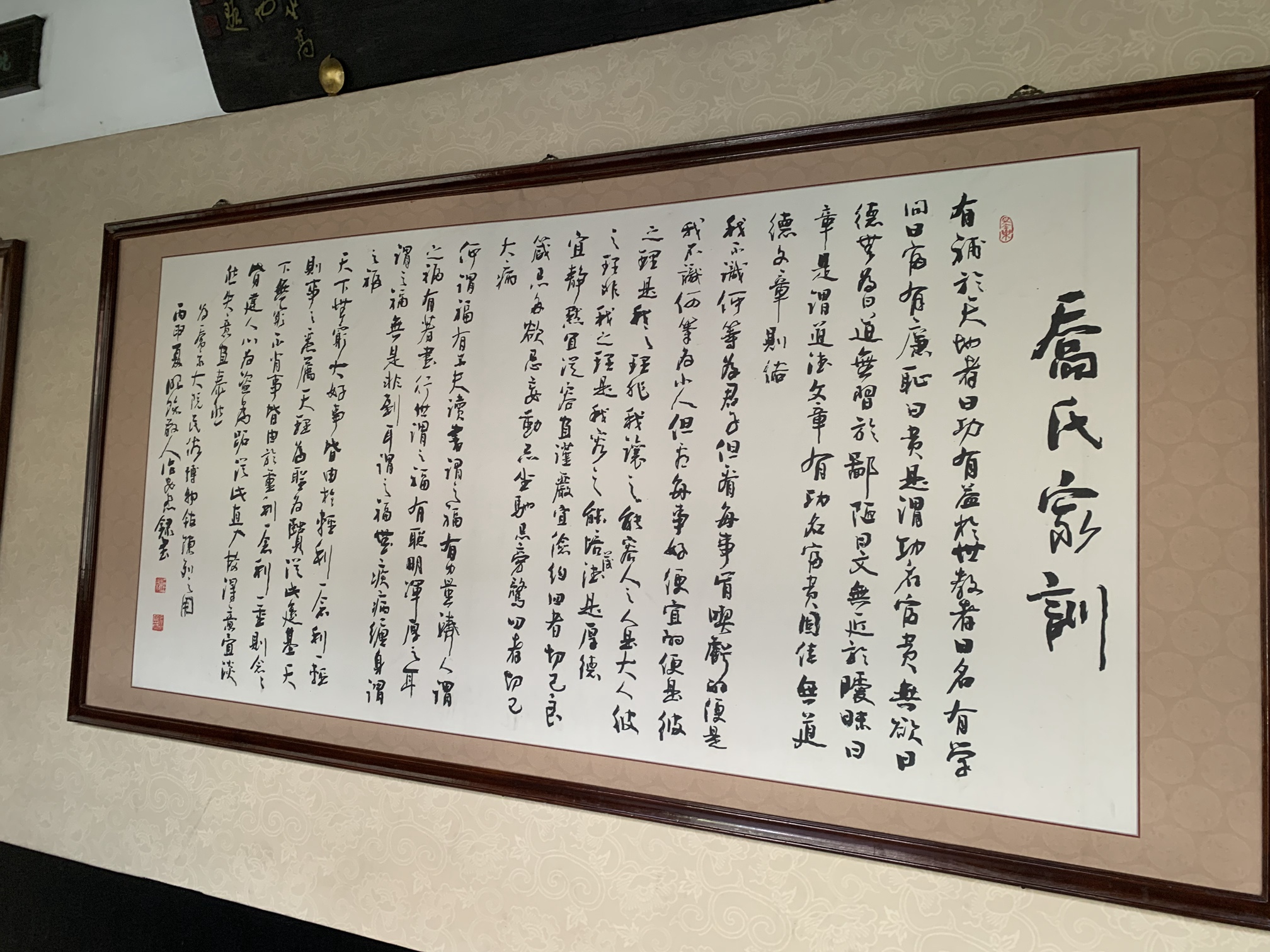 在参观过程中,我们还对乔家的家规家训产生了浓厚的兴趣。据了解,乔家家规严格,注重家族成员的品德修养和行为规范。他们强调诚信、勤俭、尊老爱幼等传统美德,要求家族成员在日常生活中严格遵守。这种严谨的家风不仅塑造了乔家人的优秀品质,也为他们的商业成功奠定了坚实的基础。乔家的家训更是深入人心,如“和为贵”“忍为高”等,都体现了乔家人的处世哲学和人生智慧。这些家规家训在当时具有指导意义,在今天看来依然具有重要的价值。