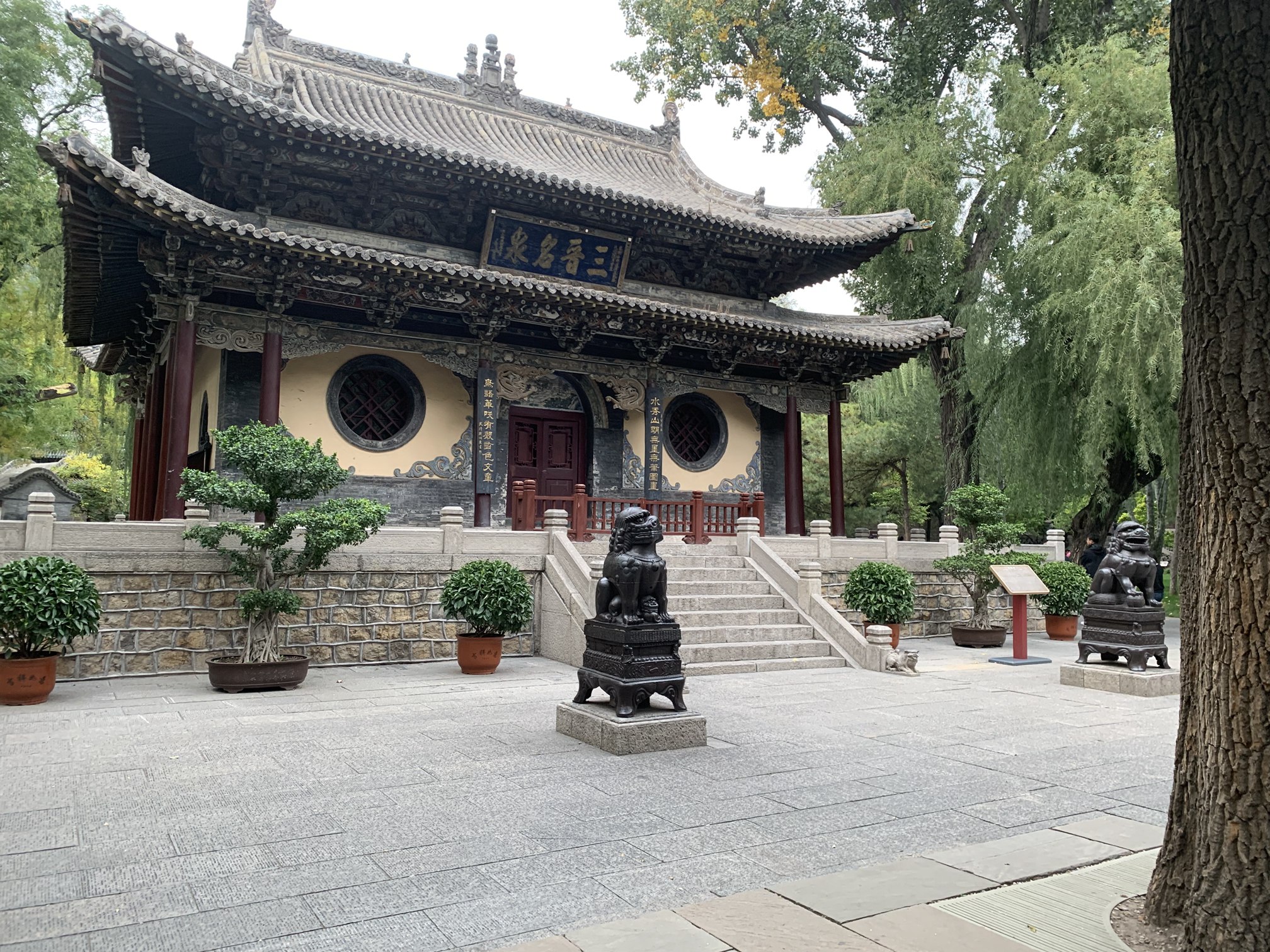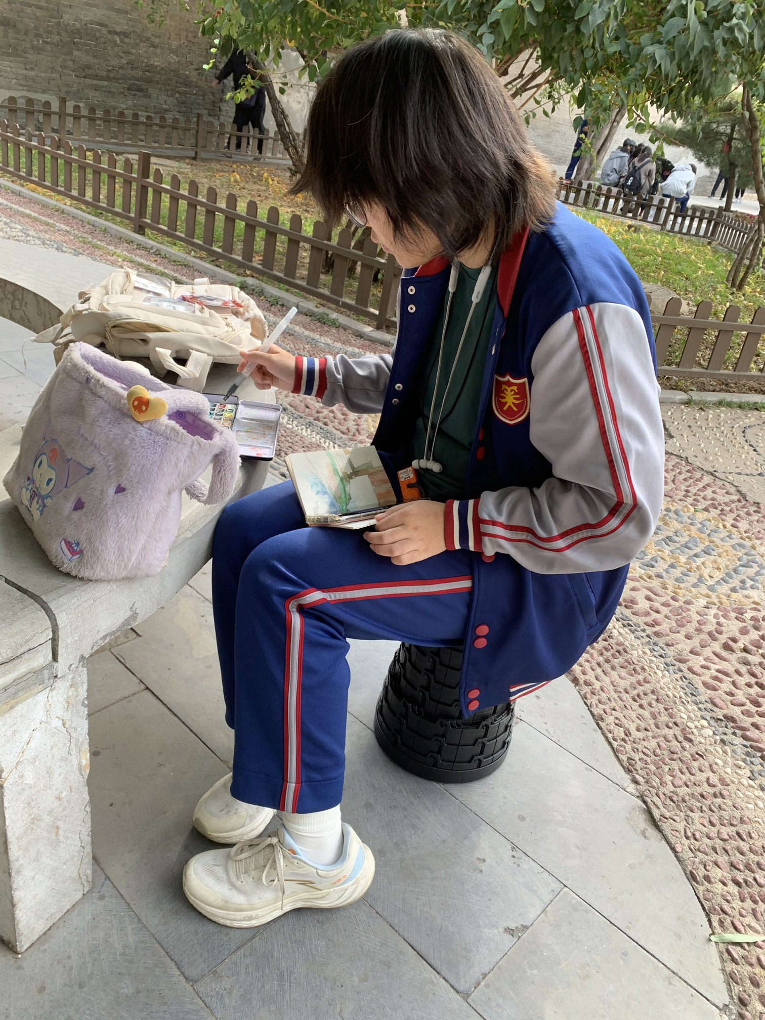 下午,阳光温柔地洒在晋祠博物馆的古朴建筑上,为这座承载着丰富历史文化的博物馆增添了几分庄重与神秘。博物馆内的建筑布局严谨,每一座殿堂、每一座亭台、每一个雕塑都透露出古代工匠的精湛技艺和对美的追求:圣母殿内的宋代彩塑侍女像,她们栩栩如生,仿佛正诉说着千年的故事;鱼沼飞梁上的精美石刻,一刀一凿都凝聚着古代工匠的心血与智慧;献殿内的金代铁铸人,造型独特,工艺精湛,是古代冶金技术的杰出代表。我们被这些古建筑的美所深深吸引,通过画笔捕捉它们的历史韵味和文化内涵,努力在速写本上记录下它们的独特魅力。