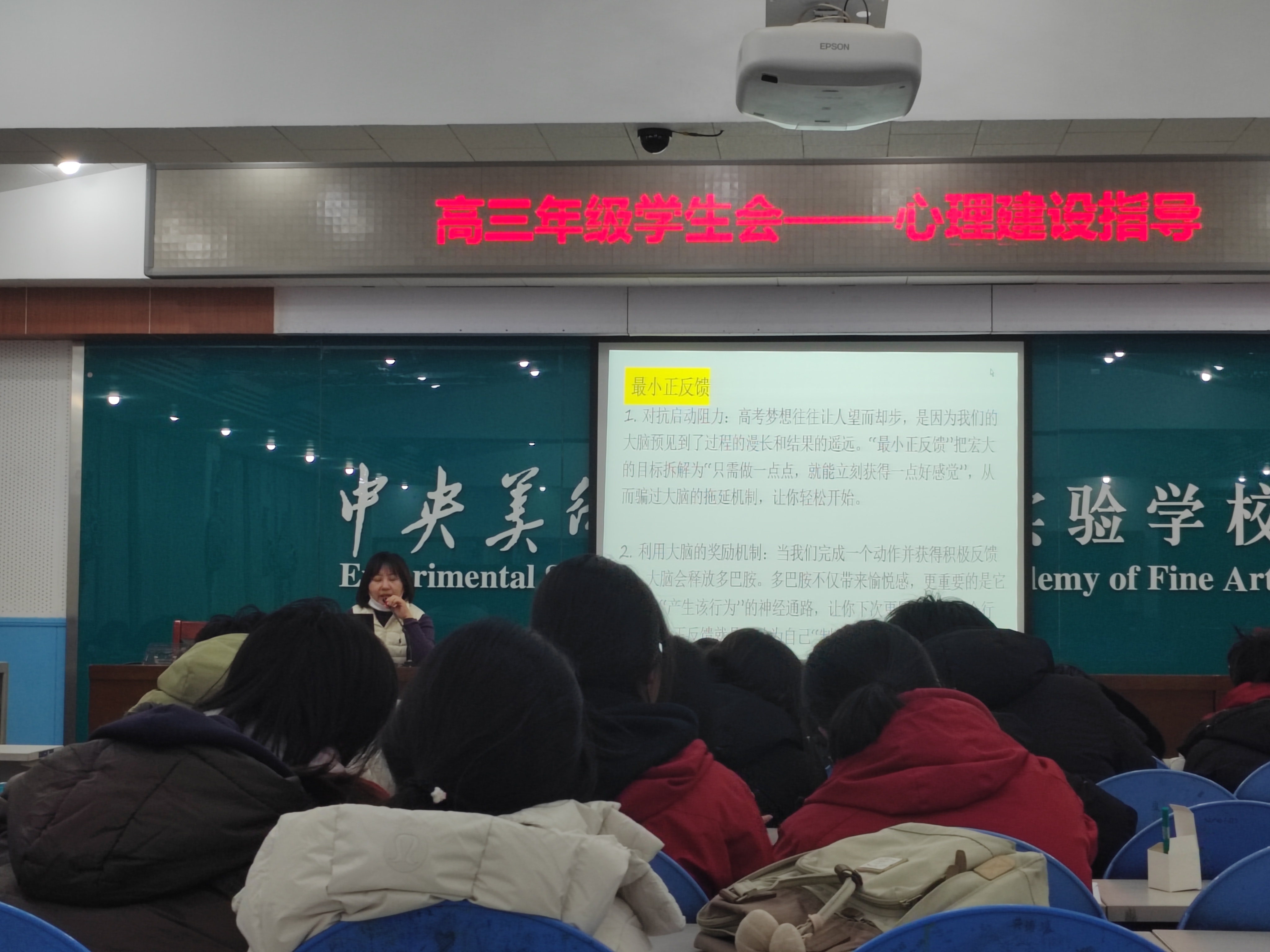 2025-12-17 05:12:00 2025年12月11日下午,央美实验学校开展高三年级学生心理辅导活动,活动由心理专职教师王琛主持。