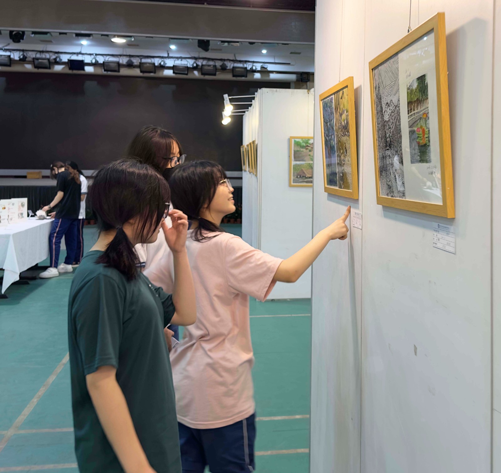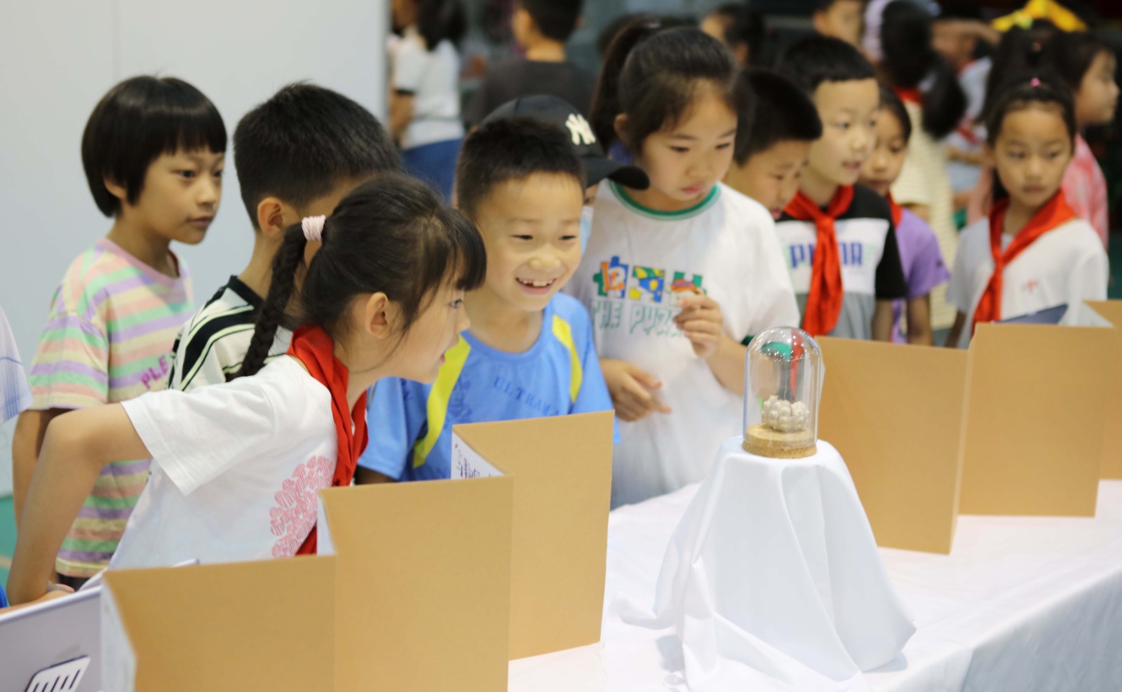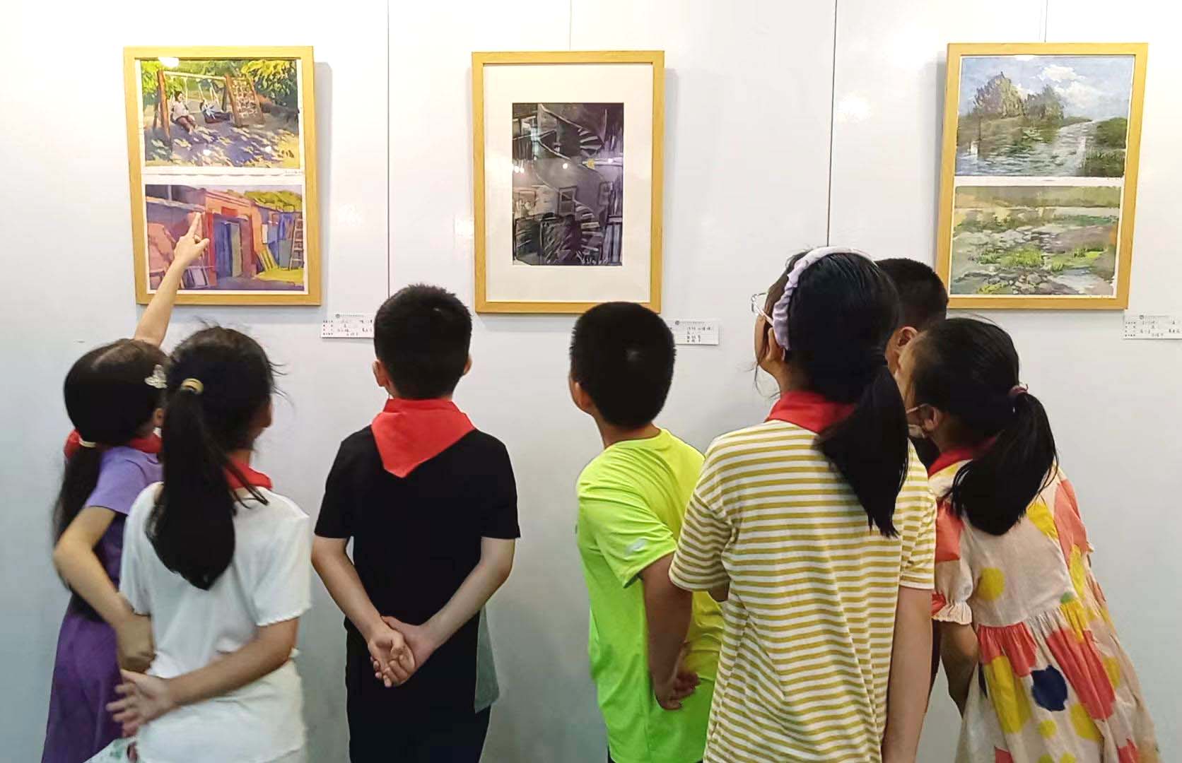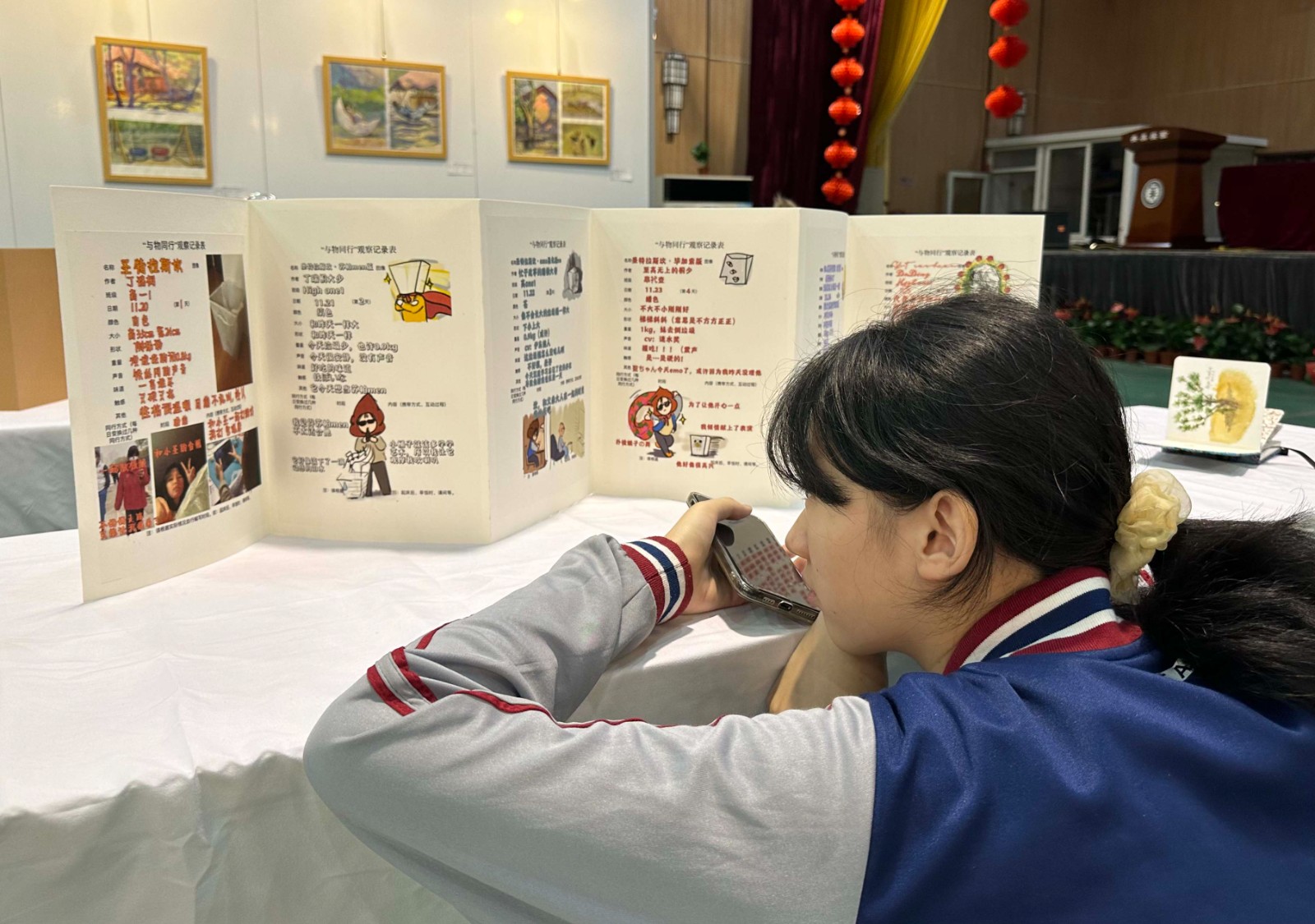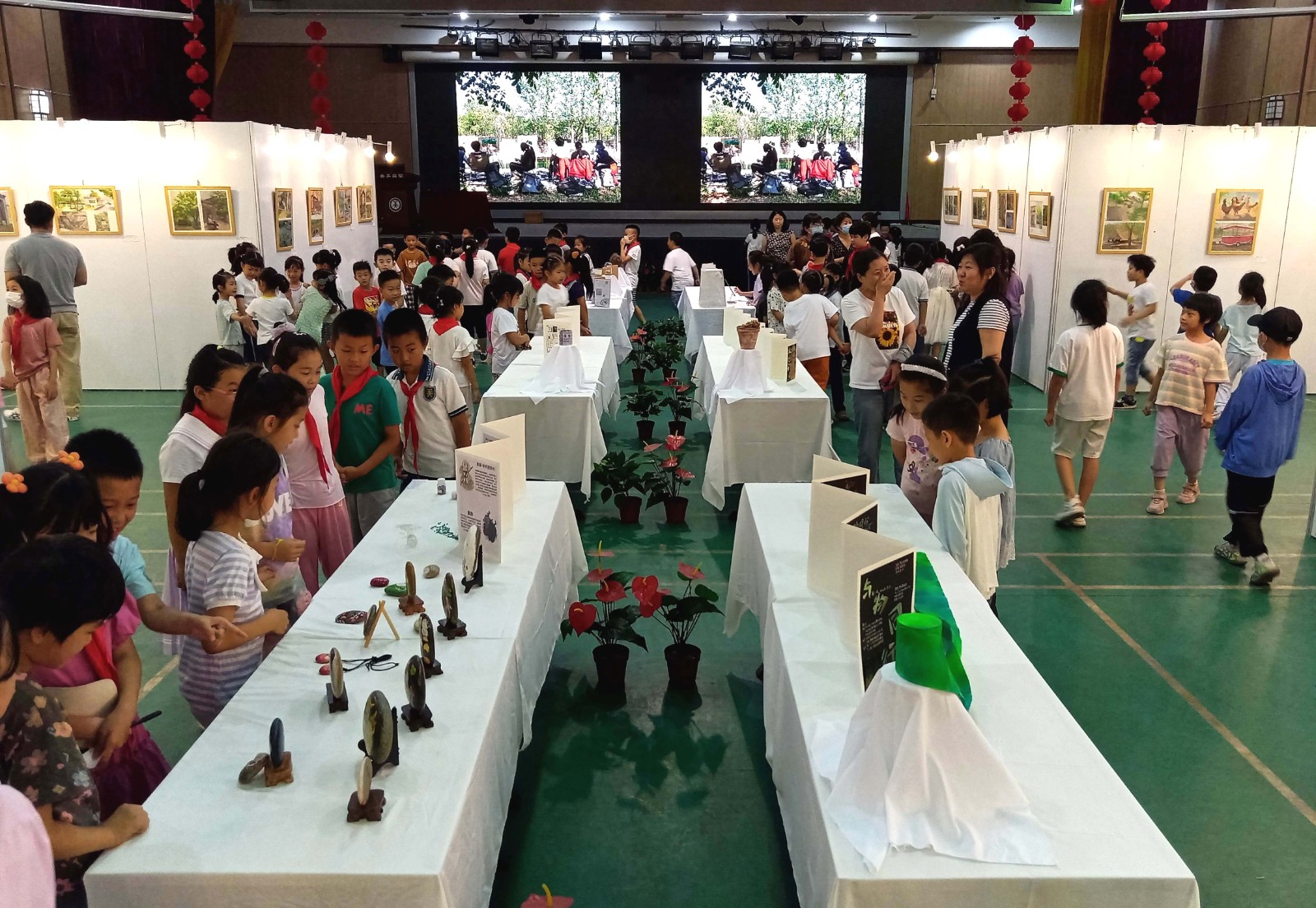 展览开幕当天,作为十二年一贯制的美术特色学校,不同年龄段的学生互相交流学习,校区间的师生联动是美育课程的重要内容。在孩子们天真浪漫的言语间,透露出对新奇事物的探索热情,这些源于自然的作品也更加鲜活与生动。