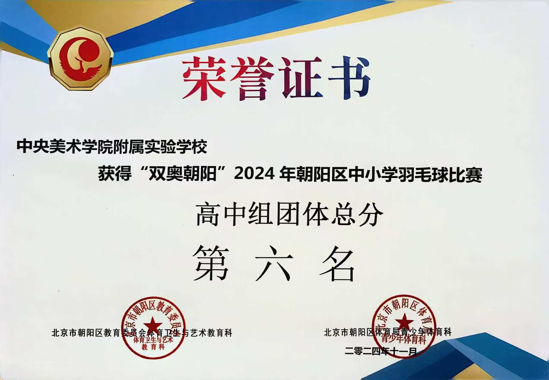 喜报|央美实验学校获“双奥朝阳”羽毛球团体赛高中组第六名
