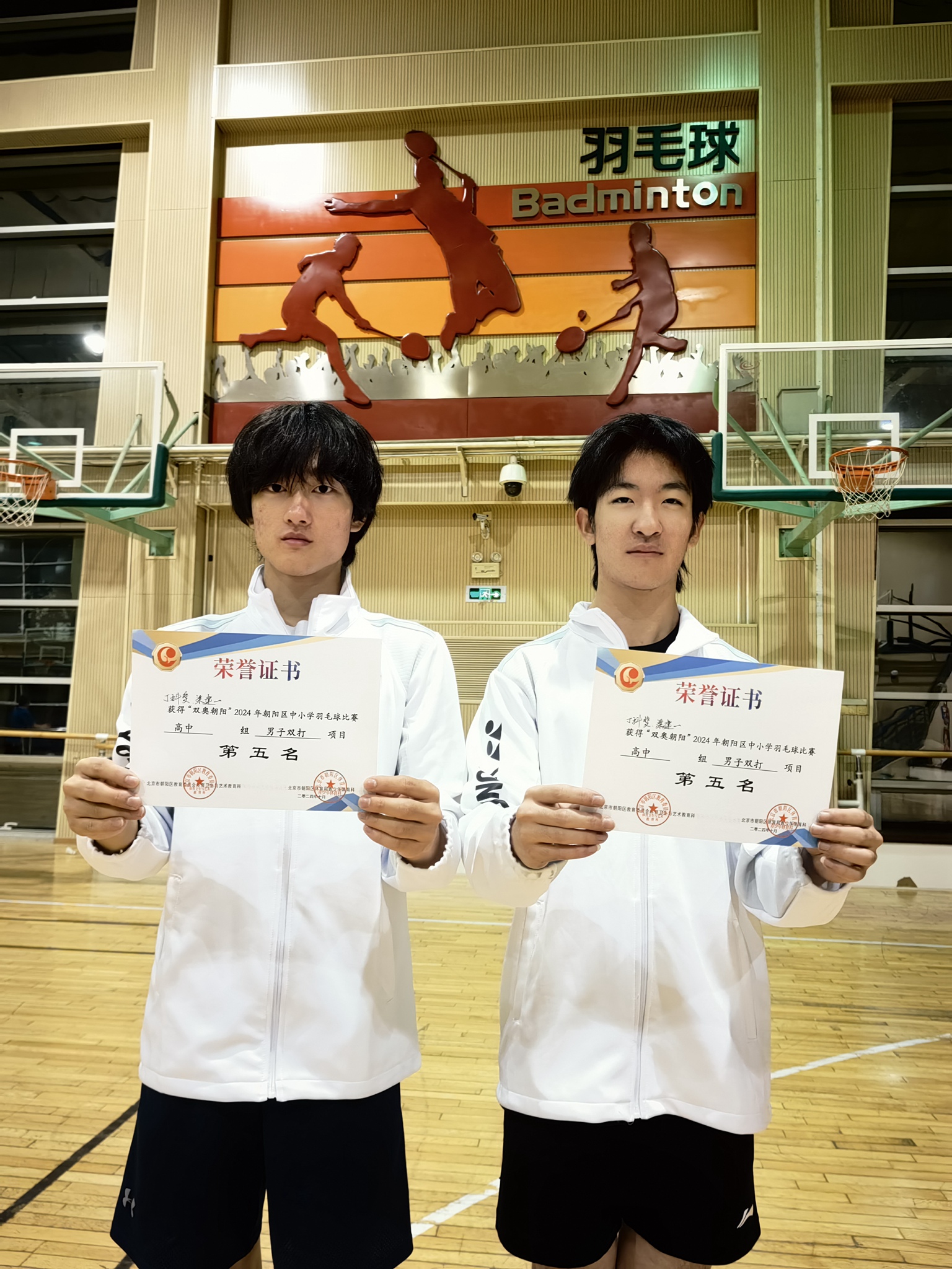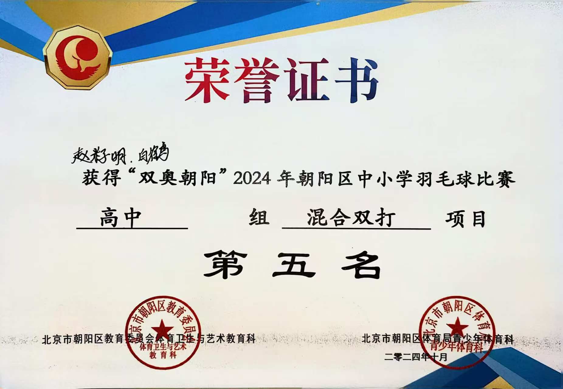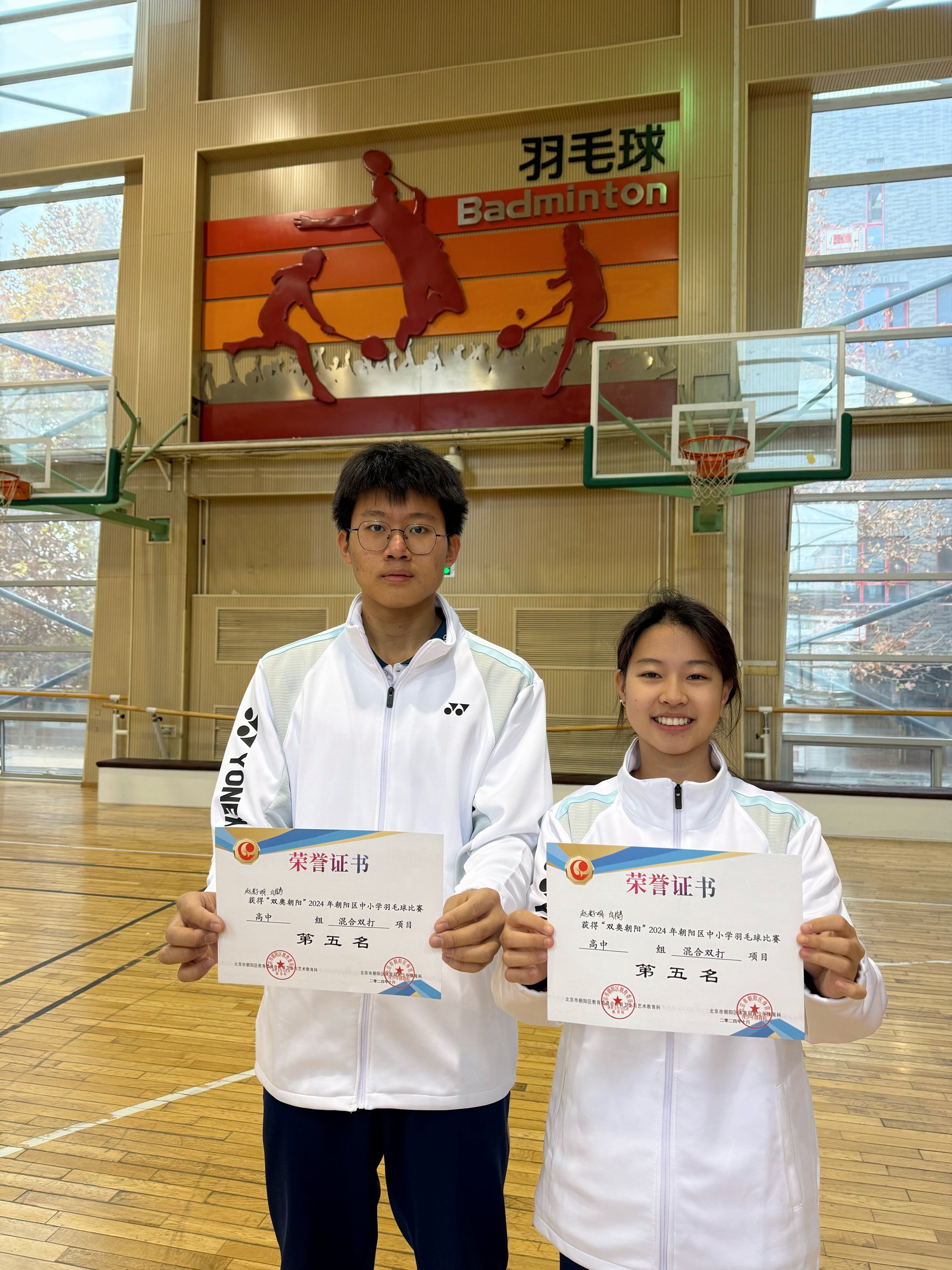 2024-11-29 04:11:00 2024年11月16日,央美实验学校高中部羽毛球队在体育教研组老师的带领下参加“双奥朝阳”2024年朝阳区中小学羽毛球比赛,斩获团体总分第六名;男子单打第五名、男子双打第五名、女子双打第五名、男女混双第五名的好成绩。