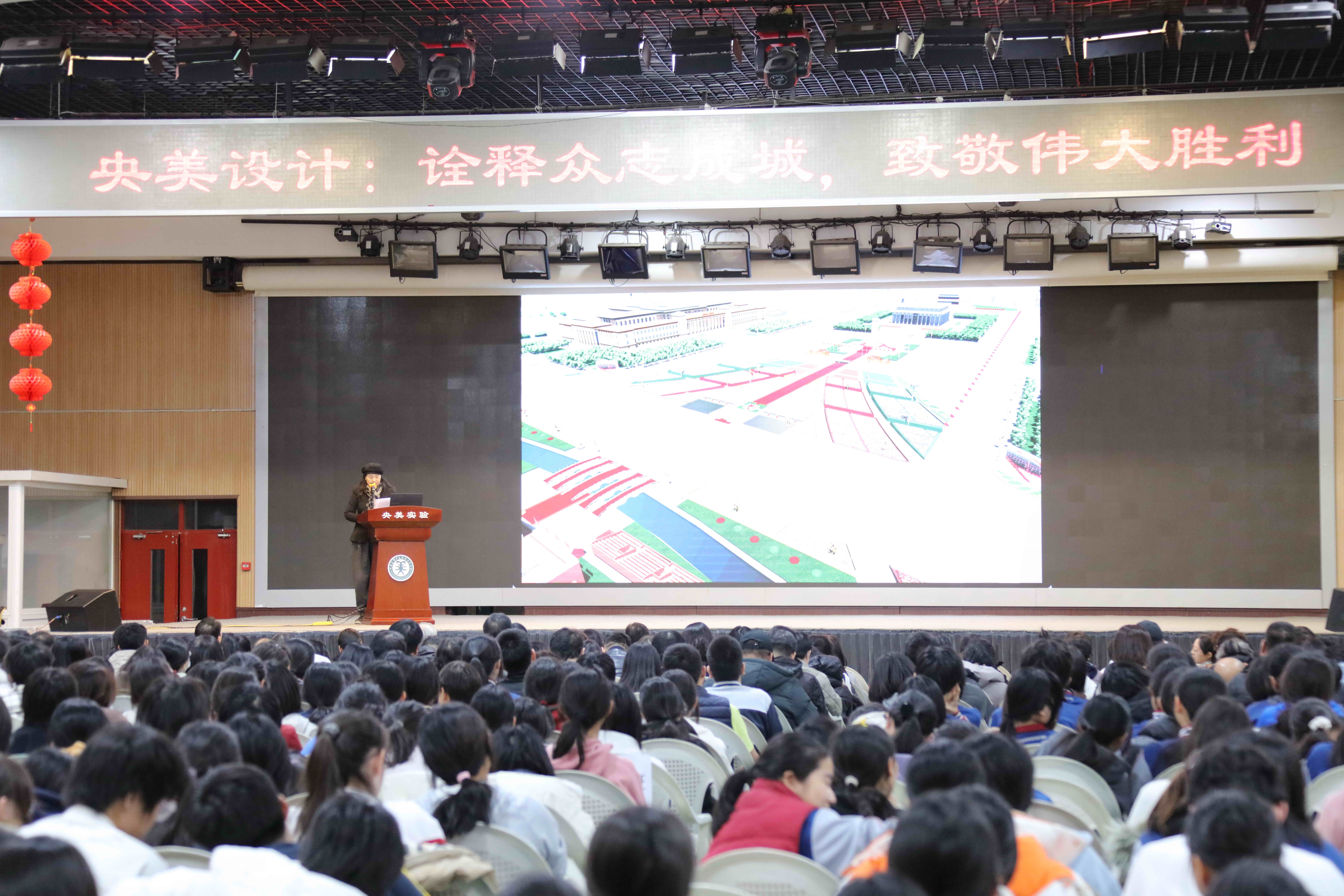 在中国人民抗日战争暨世界反法西斯战争胜利80周年纪念大会活动中,中央美术学院全面负责会场空间布局、色彩体系、主视觉创作等设计工作。作为本次设计工作的亲历者,四位教授在宣讲中紧扣这一重要历史节点,以设计团队背后的创作故事为切入点,将"铭记历史、缅怀先烈、珍爱和平、开创未来"的价值理念融入到宣讲的全过程,激发同学们将历史感悟转化为艺术创作的动力。
