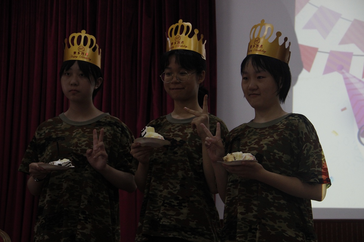 “天下虽安,忘战必危”,古今中外概莫能外。军训是高一新生非常重要的开学第一课。既是学生们必须完成的课程,也是他们作为公民必须尽到的职责。8月11日当天,学生们到达军训基地在参加了庄严的开营仪式后,没有休息就开始了紧张的训练。军训期间有三位同学要在军营过生日,并且其中两位都是8月11日。为了让学生在军训第一天就感受到学校、老师对他们的关心和爱护,在非常紧张的第一天策划了一个温馨的生日会。孩子们事先并不知情,突来的惊喜使三个孩子热泪盈眶,其他的孩子们也深受感动,并且纷纷下定决心一定要克服困难,圆满完成军训任务。