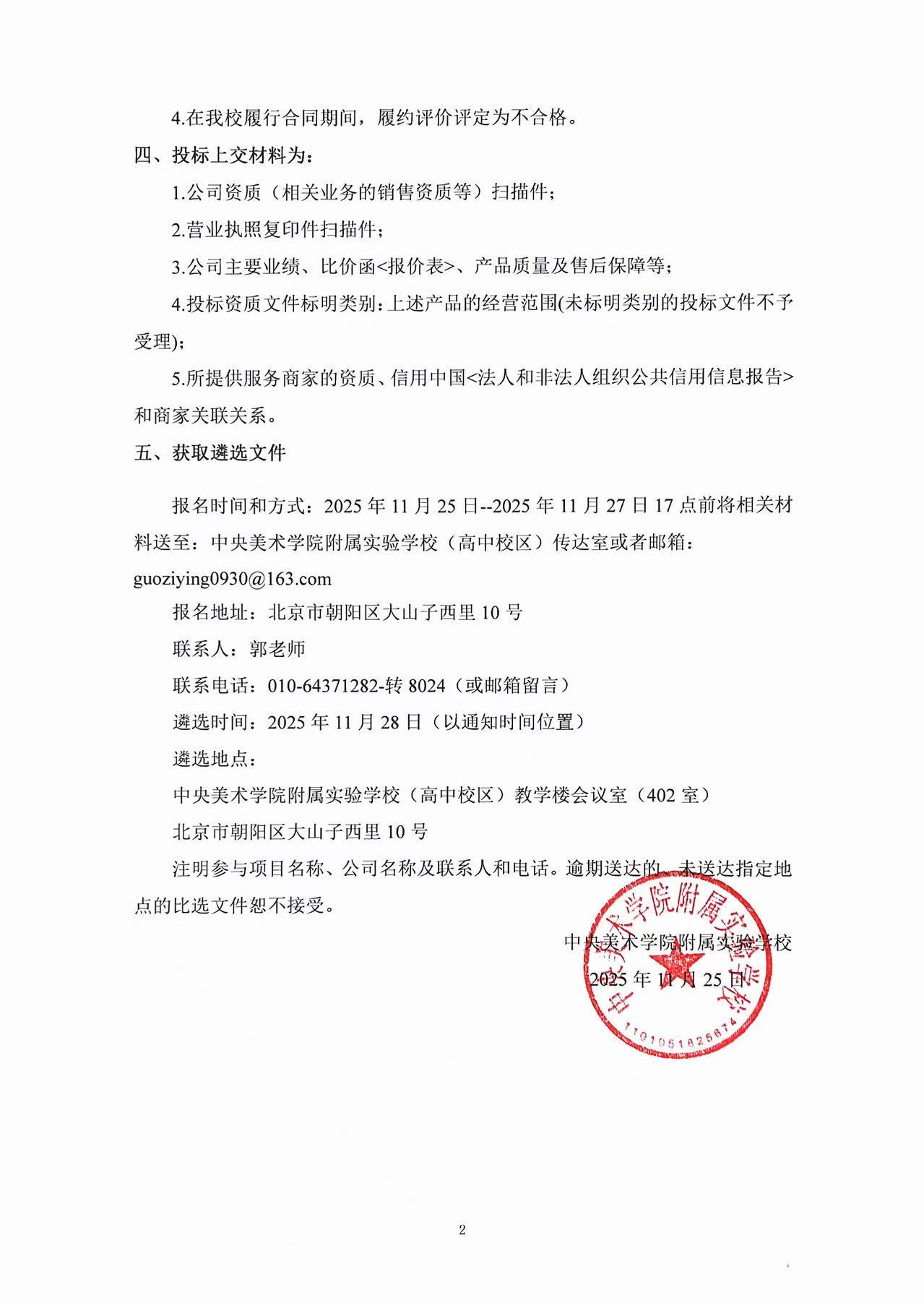 中央美术学院附属实验学校“教学多媒体一体机电脑模块升级”采购项目遴选公告