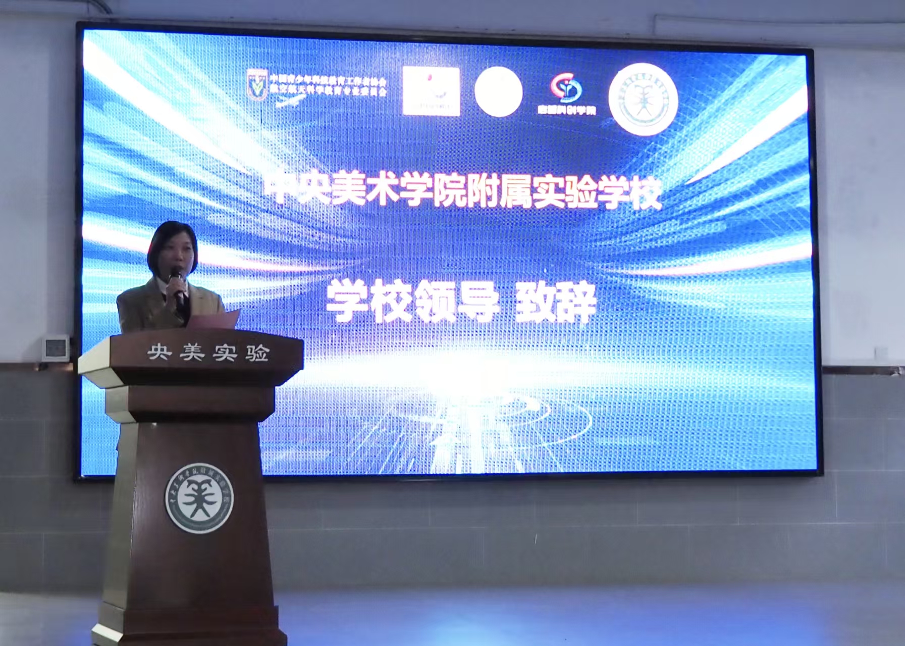 活动现场,小学校区代理主管韩盈盈代表学校登台致辞,向参与活动的专家、老师致以诚挚谢意,寄语学子弘扬科学家精神,勇担时代使命,让科技梦想扎根成长。