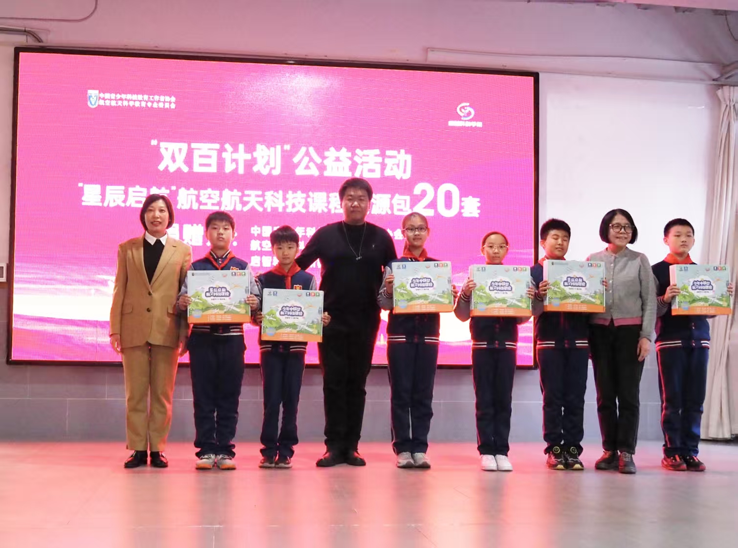 “双百计划”专家孙莹、青科协航空航天科学教育专委会高文硕为学校学生捐赠“星辰启航”航空航天科技课程资源包,助力同学们开启探索航空航天科学奇妙之旅,放飞科技梦想。