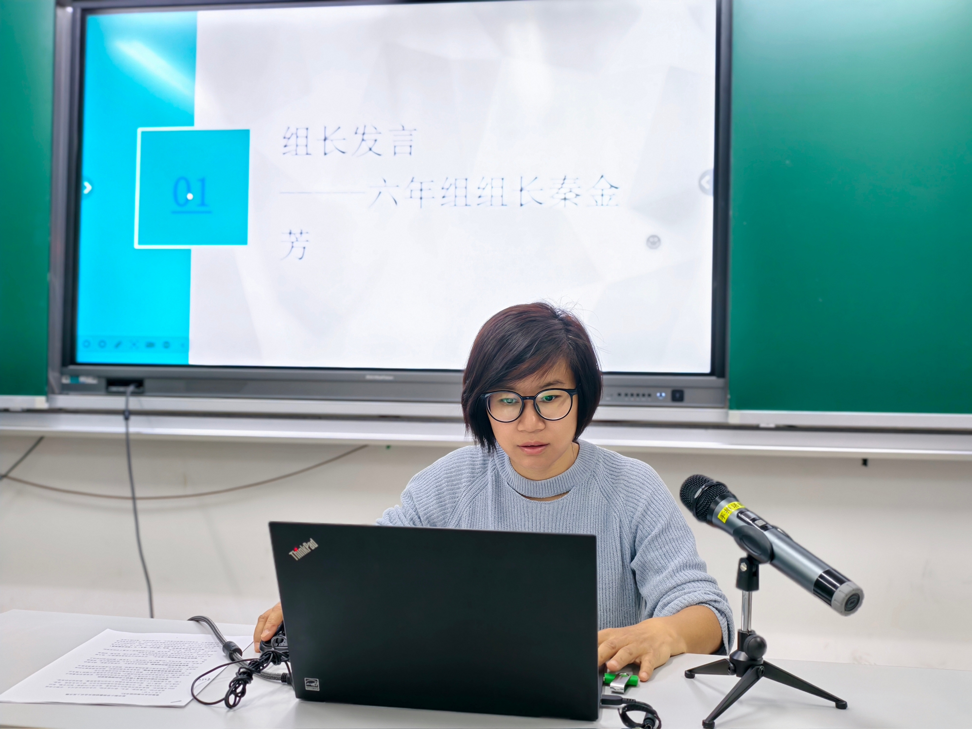六年级组长秦金芳老师分享了教研组在“教学评一体化”实践中的探索与思考。他们组通过即时教研、集中教研、智能辅助教研等方法,提升教研实效。她指出,教研不仅是教学的保障,更是教师成长的助推器。