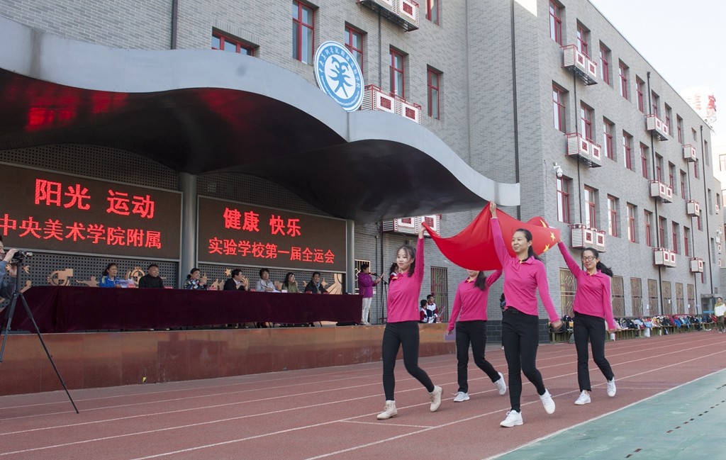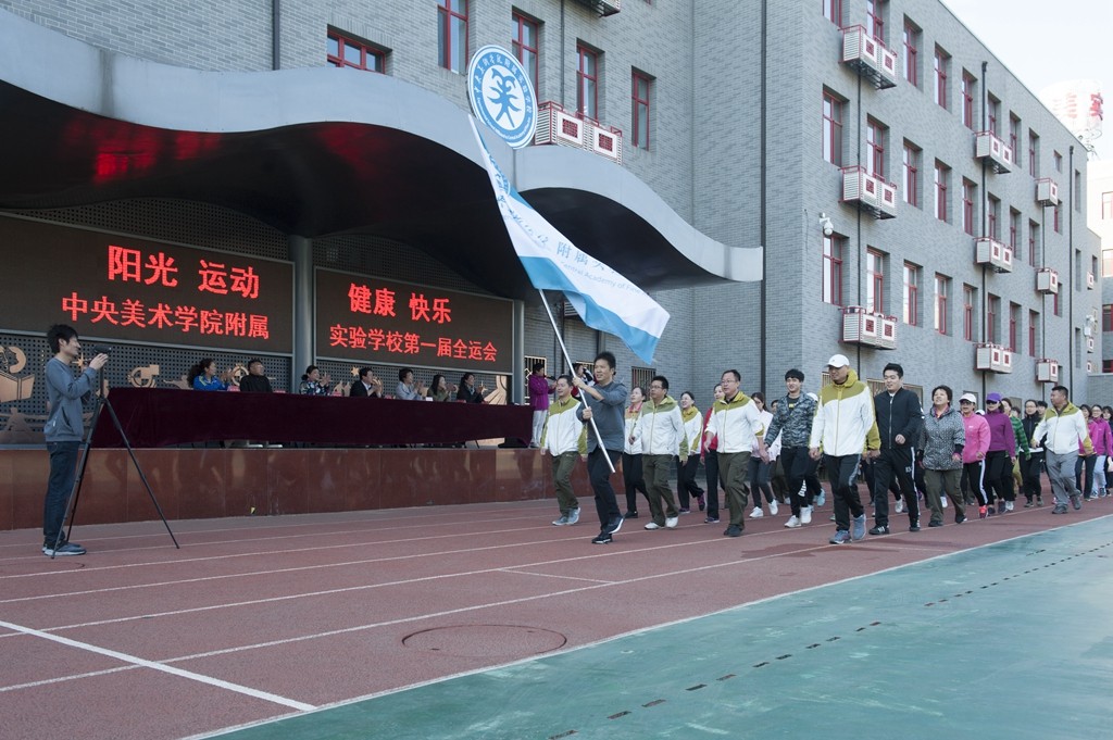 2018-09-30 11:09:55青春拥抱梦想,激情燃烧希望,2018年9月29日早上八点,中央美术学院附属实验学校首届中小学生全运会暨央美实验学校教师运动会在学校操场隆重开幕。全校约1200多名学生、200多位教职员工及70多位家长共同参加了开幕式并参与全程活动。四位教师组成的国旗护卫队在激昂的运动员进行曲中带领裁判员方阵、运动员方阵和由四十多位爱心家长组成的志愿服务方阵迈着铿锵有力、矫健整齐的步伐,精神抖擞的依次走过主席台,同学们嘹亮的口号声持续回荡在操场上空。