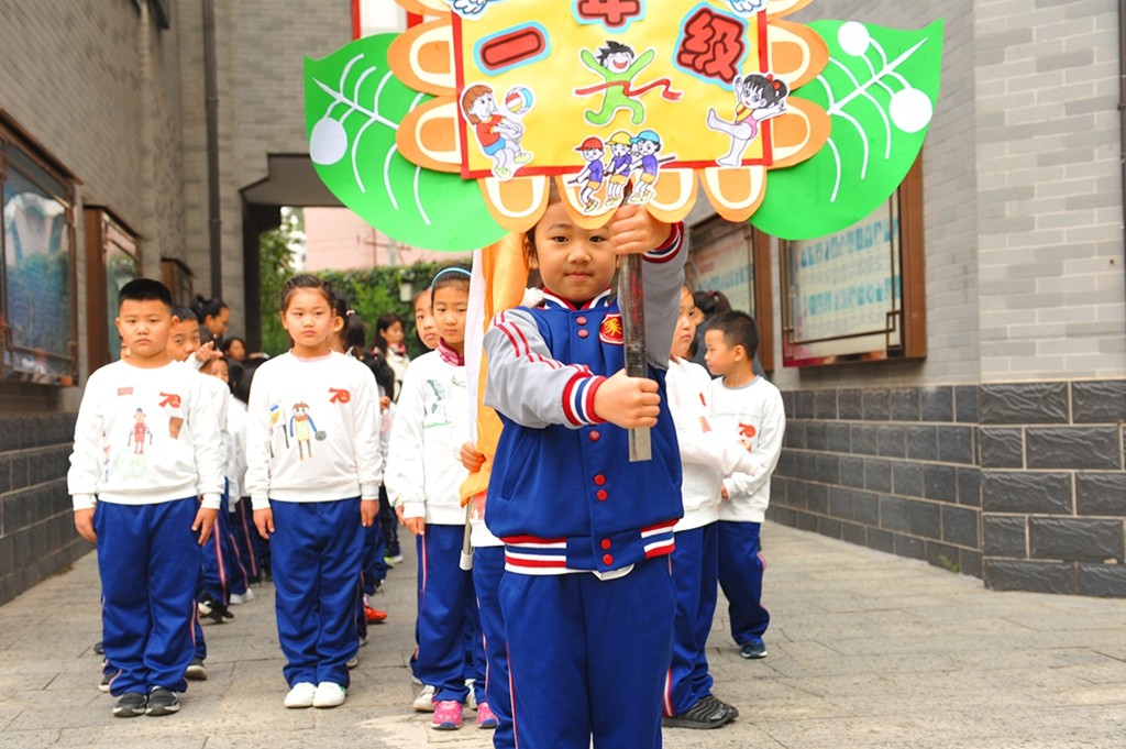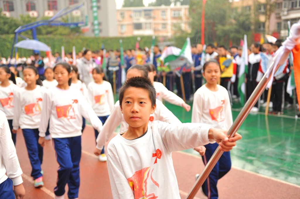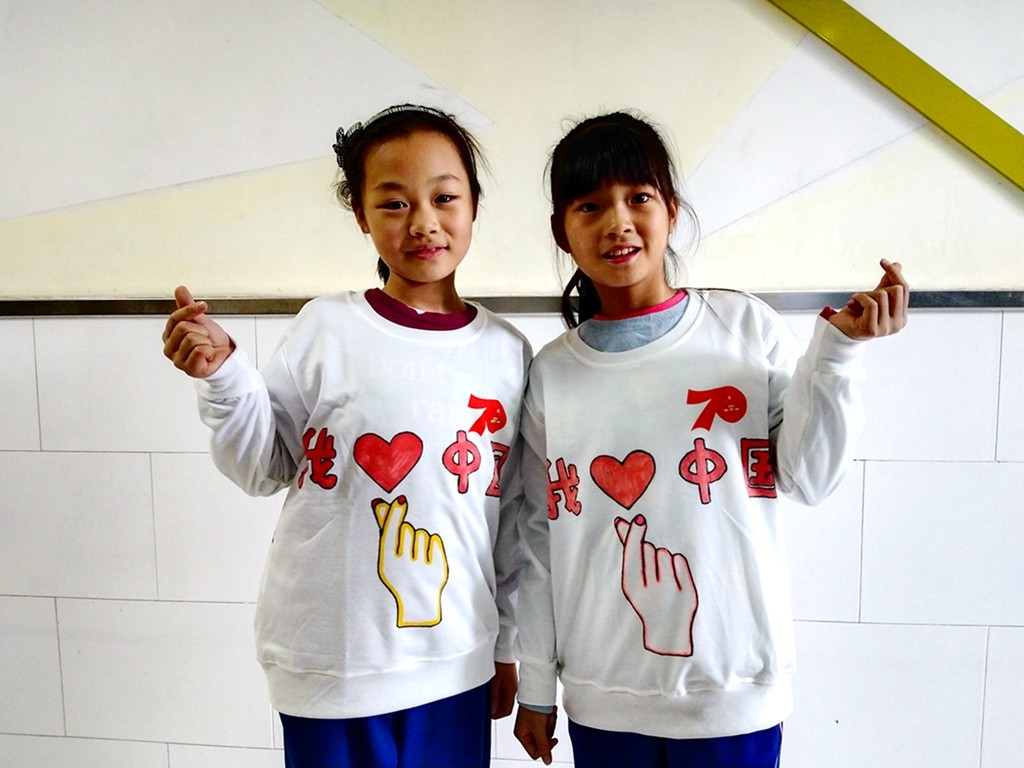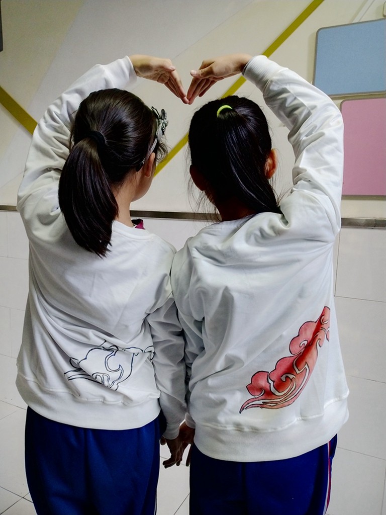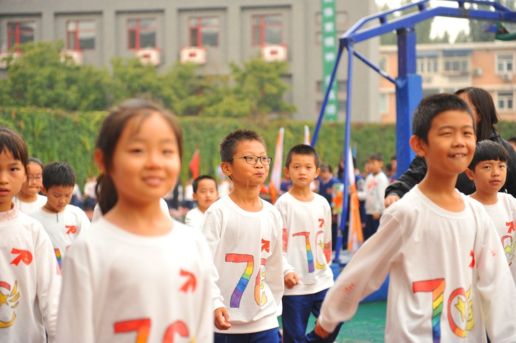 学生在老师的带领下,利用水彩笔绘制各种和国庆有关的卡通文化衫,自己构思、设计,将富有个性的美丽图案勾画在T恤衫上。他们在学校全运会上统一穿着自己设计的文化衫,迈着整齐的步伐,昂首挺胸的走过主席台,尽情展示各班特色。