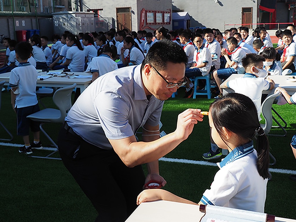 至此,开笔礼成!传统仪式与现代学子跨越时空的融合,既是弘扬中华民族传统文化的一课,又是对新同学爱国爱校教育的首课。热烈祝贺又一批孩子正式成为小学生,善正之道今日始!在今后的漫漫求学路上,愿新同学们勤奋刻苦,不断进取,做新时代德智体美劳全面发展的善正好学生。让“尚德至诚、崇思唯美”真正成为央美实验学校学子成长的座右铭。