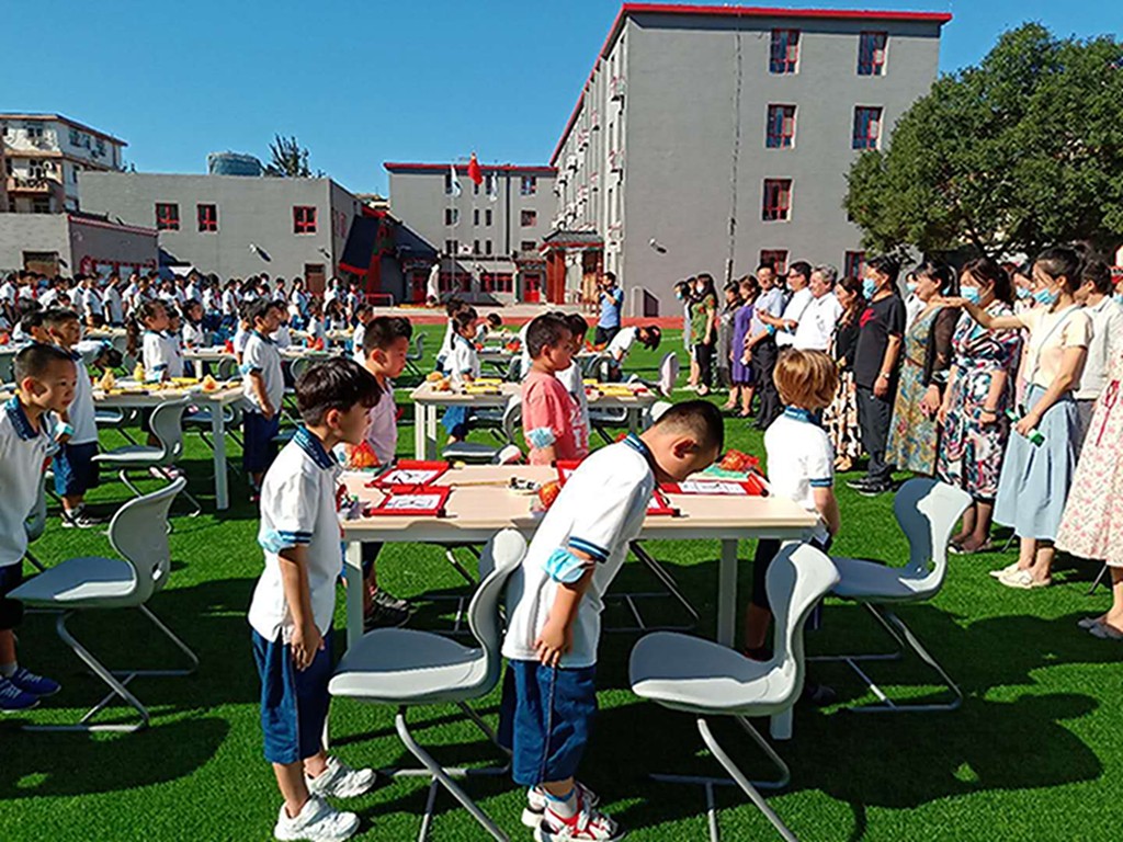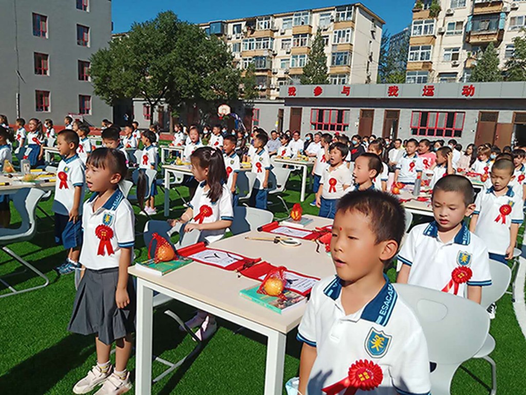 中国是礼仪之邦,敬老师、铭校训 、立于行,是每个孩童入学的必修课。新同学们端正肃立行三鞠躬礼,一鞠躬,敬老师,读圣贤书、行仁义事;二鞠躬,铭校训,尚德至诚、崇思唯美;三鞠躬,立于行,立修其志、报效祖国。“揖深圆,拜恭敬”,小小的心灵里播撒“尊师重道,孝顺长辈”的美德种子。