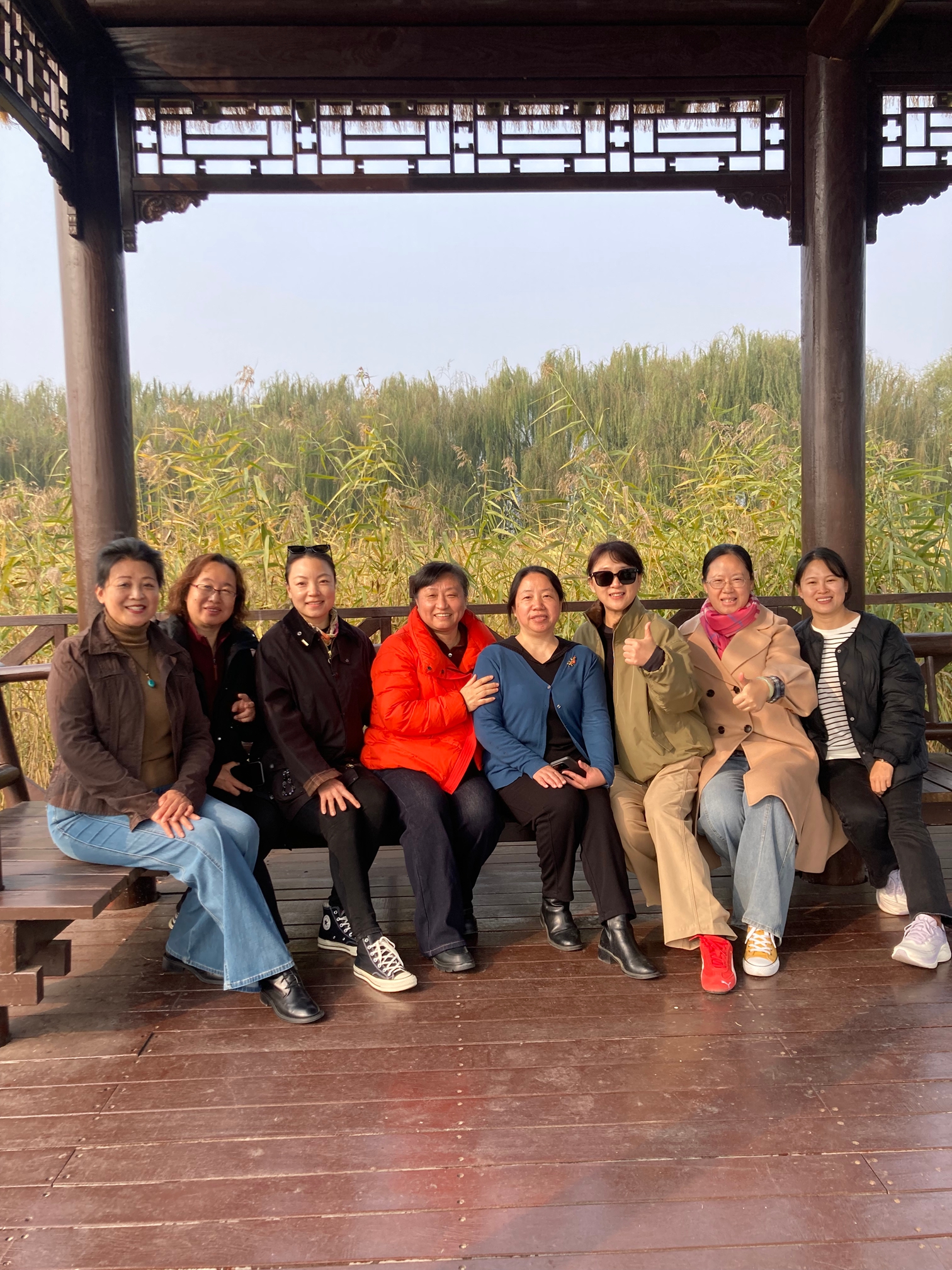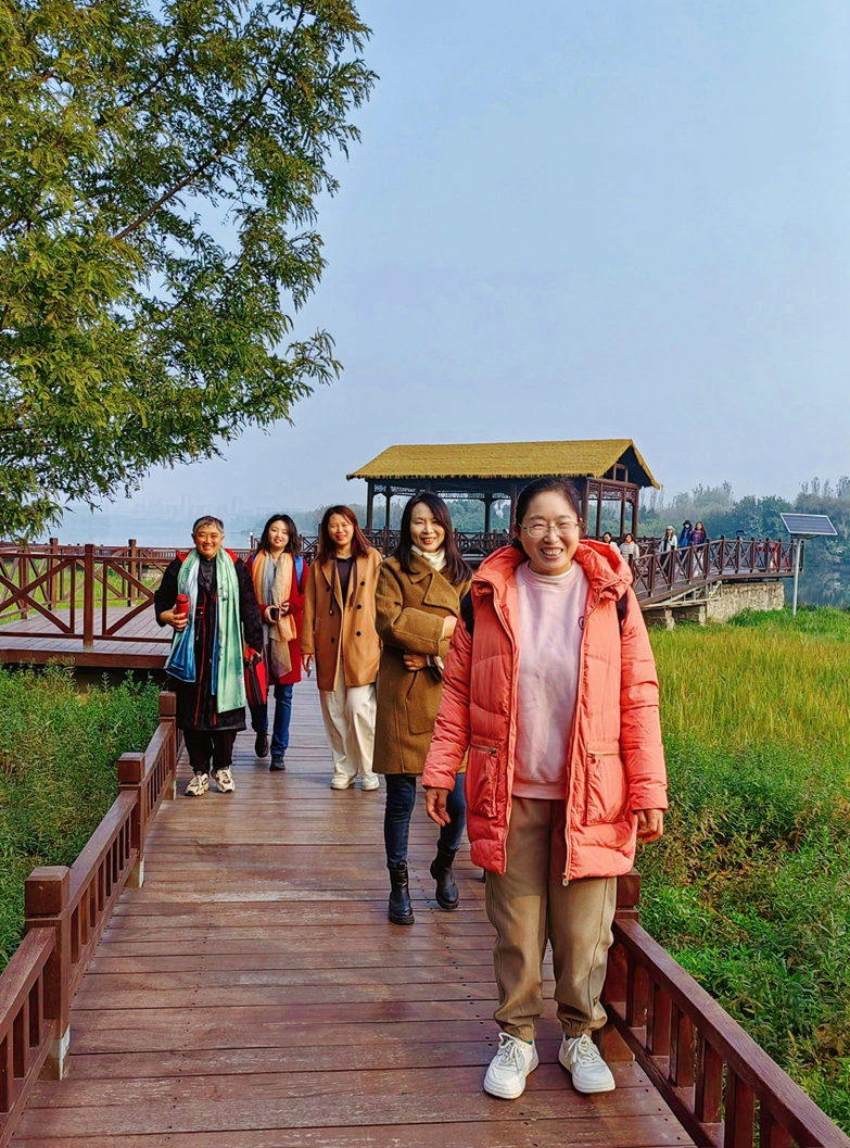深秋的大运河森林公园层林尽染,色彩斑斓,宽阔的运河水面波光粼粼,老师们漫步于林荫步道,呼吸着清新的空气,沉醉于潋滟秋光中。大家纷纷驻足留影,欢声笑语回荡林间,工作的疲惫在运河畔的清风绿意中一扫而空,身心得到充分放松与愉悦。
