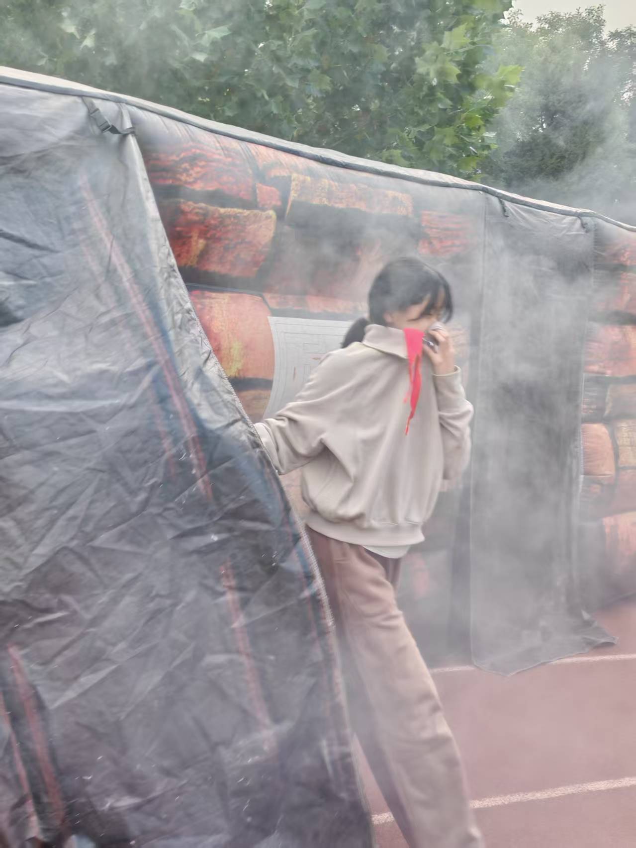 消防烟雾逃生:同学们走进移动式火灾逃生训练设备,在烟雾发生器营造的逼真环境中,学习逃生知识、体验逃生流程,掌握了火场求生的关键技巧。