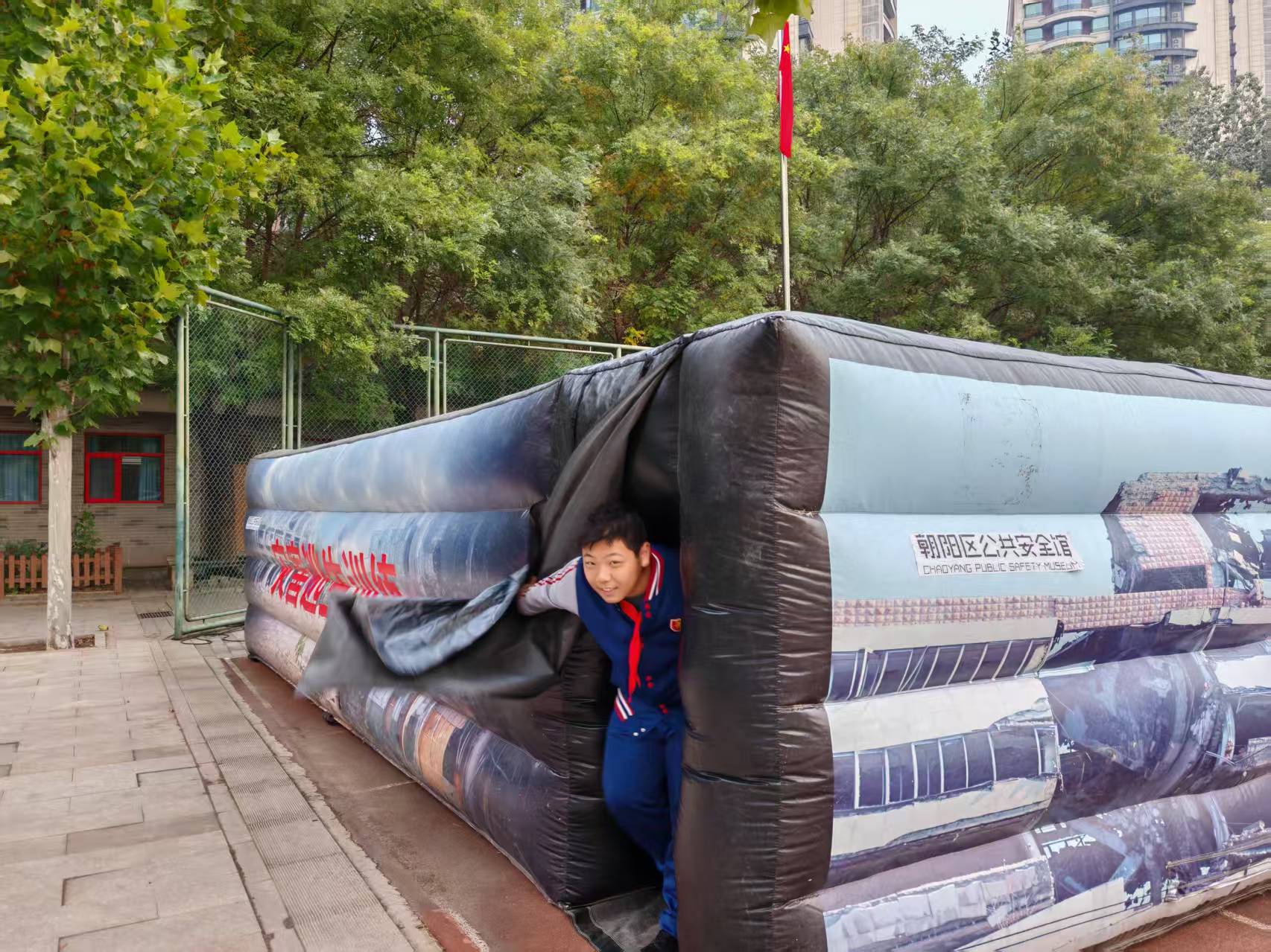 地震坍塌逃生:借助灾害逃生训练帐篷,模拟地震后建筑坍塌的狭窄空间。同学们在沉浸式场景中感受震后险情,重点锻炼震中自救与互助的核心能力。