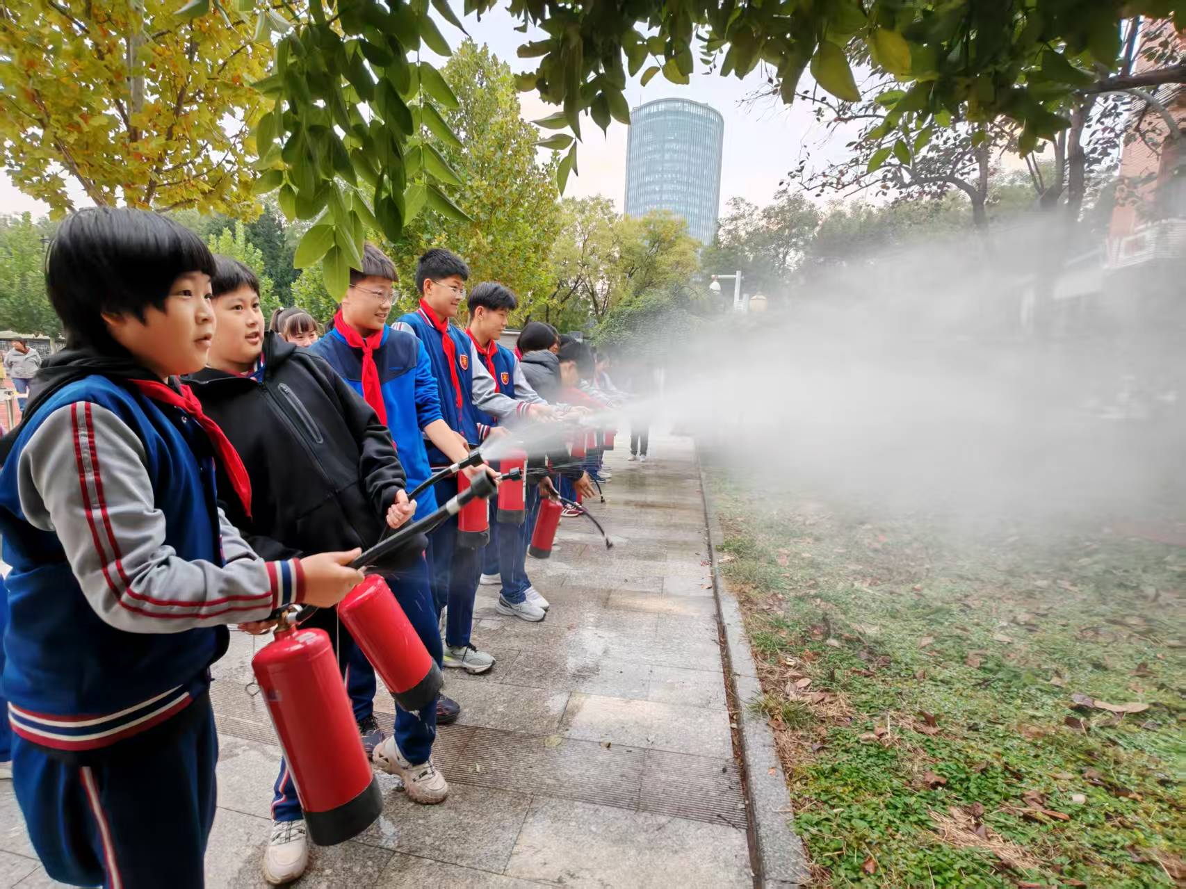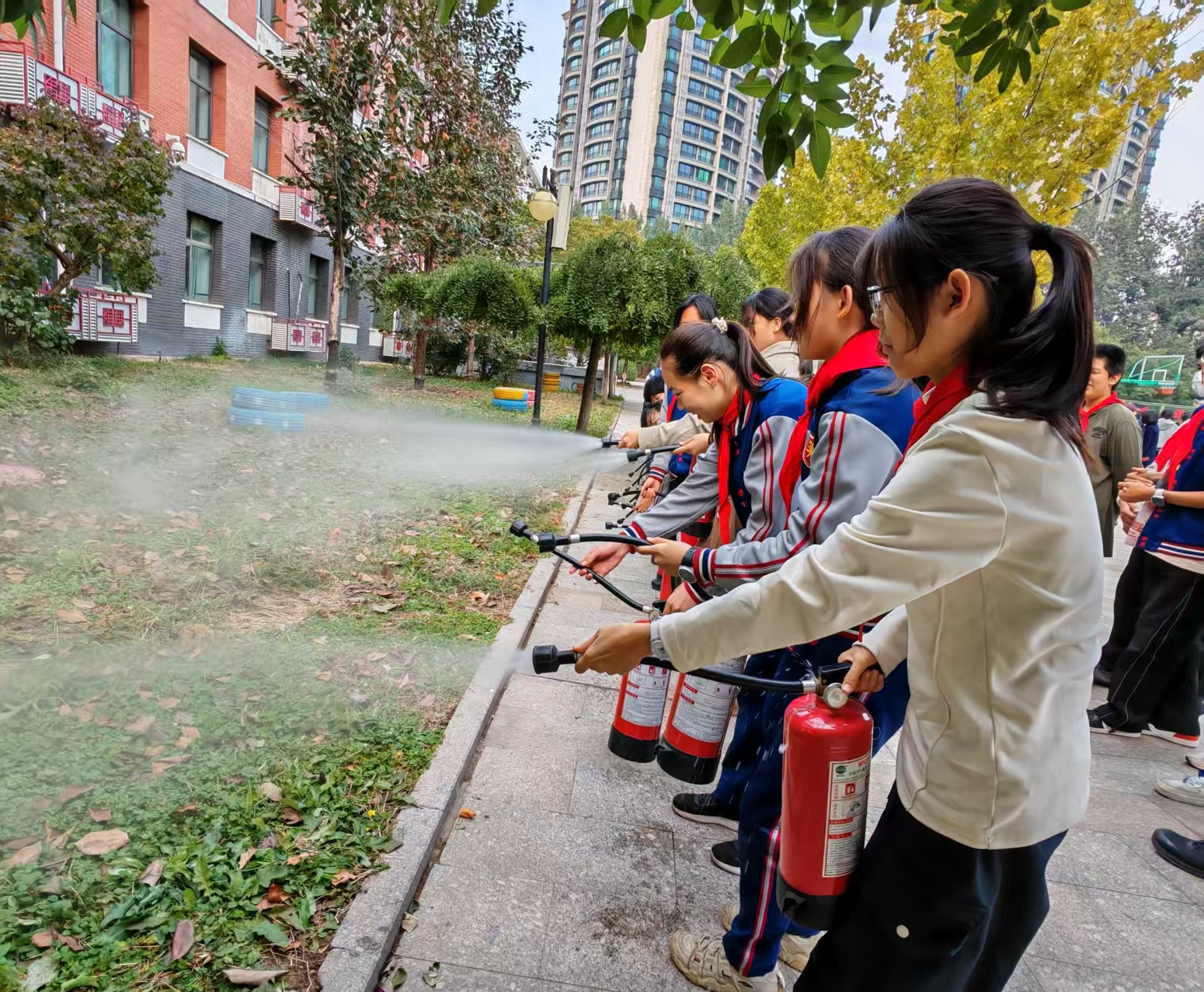 灭火器使用训练:通过可反复使用的水基灭火训练设备,同学们不仅学会灭火器的正确操作方法,还体验了带压喷射过程,掌握火灾初期“快速扑救、挽回损失”的关键能力。