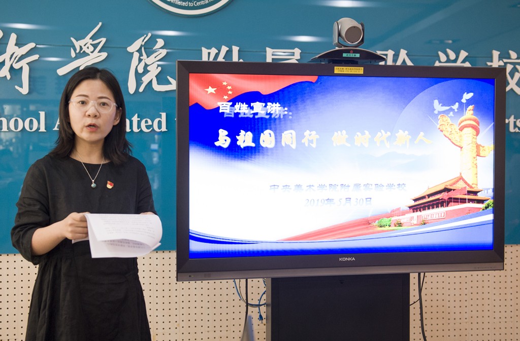 2019-05-31 06:05:51为庆祝新中国成立70周年,按照区委教工委和区教委有关百姓宣讲工作部署,2019年5月30日下午,中央美术学院附属实验学校开展了“与祖国同行 做时代新人”百姓宣讲活动。学校小学、初中、高中支部和高家园校区支部分别选派1名宣讲员参加宣讲,总支委员和党员代表出席了活动。