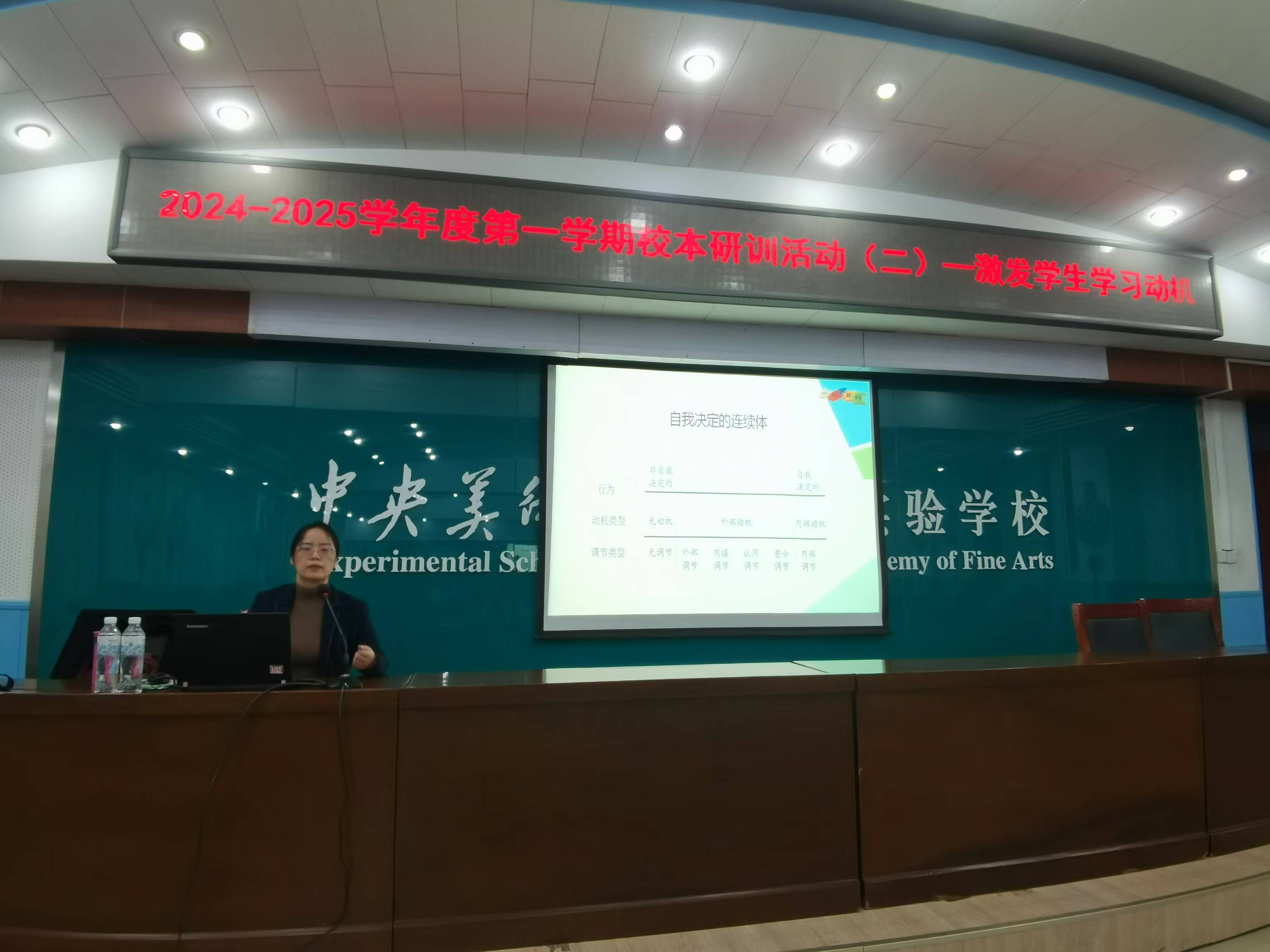 2024-10-24 08:10:00 2024年10月22日下午,中央美术学院附属实验学校举办本学期第二次校本研训,主题为“激发学生学习动机”,全体干部教师参加研训。此次研训选题由科研室经过深入调研后精心策划,针对广大教师普遍关注的如何有效调动学生学习积极性的问题进行专项指导,旨在为教师提供科学的理论支持与实操策略。