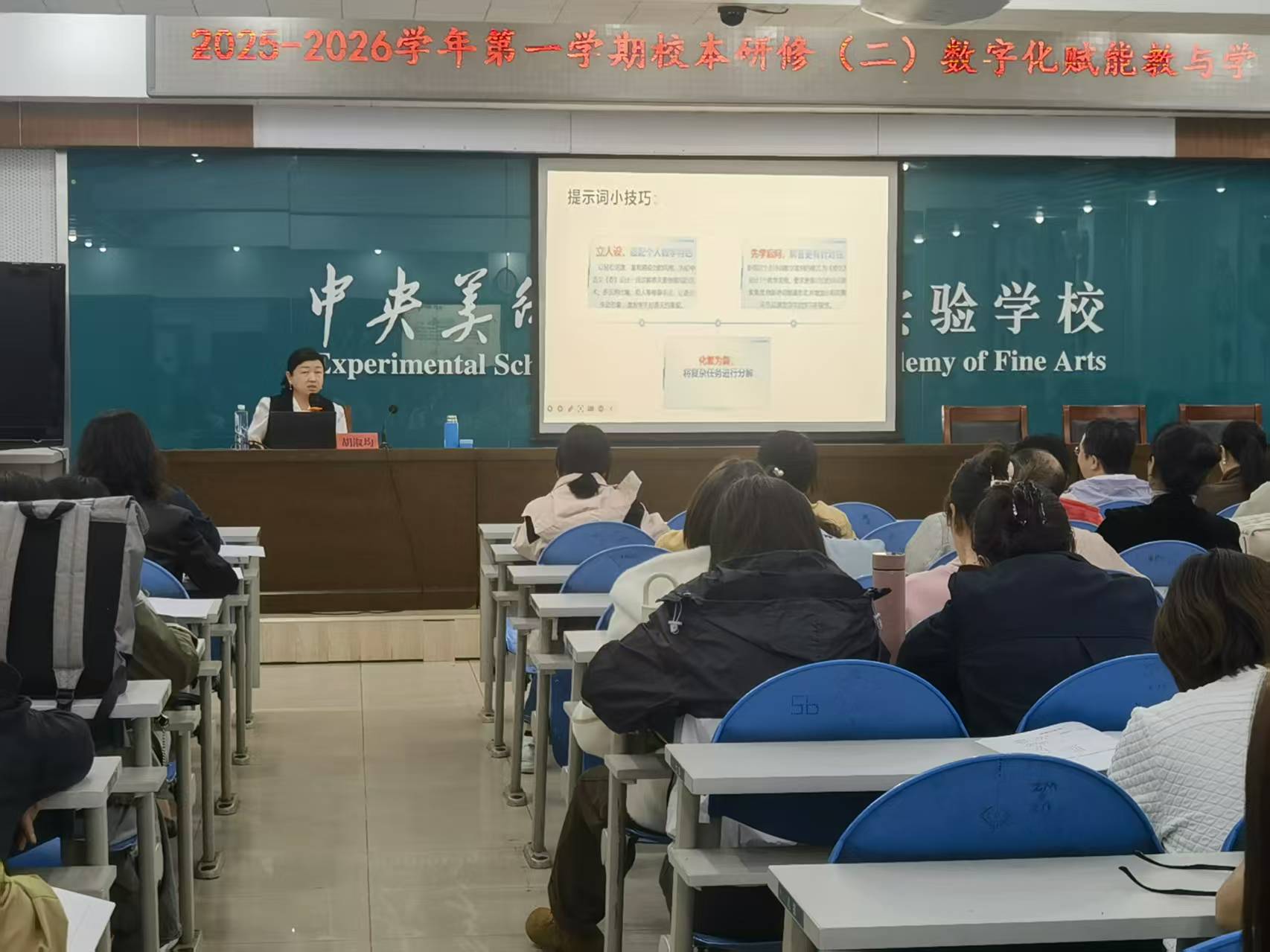 2025-10-15 10:10:00 2025年10月14日下午,中央美术学院附属实验学校举办2025-2026学年第一学期第二次校本研修,以“数字化赋能教与学”为主题,响应朝阳区第四届“朝阳杯”基本功活动“六功”锤炼要求,聚焦教师“数字功”提升,全体教师参与。