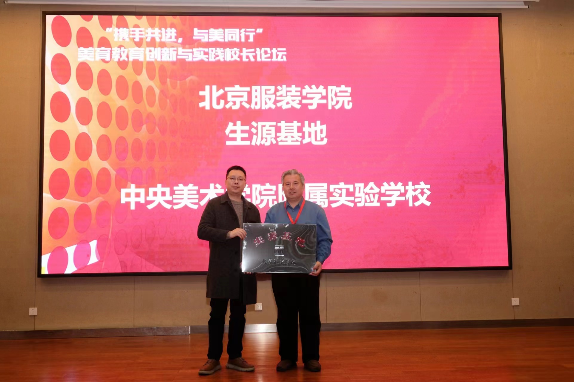在此次研讨会上,北京服装学院对优秀的生源合作学校授牌,以加强双方在时尚艺术及学生升学指导方面的合作与交流。北京服装学院作为全国顶尖的时尚设计学院,深受学生们的喜爱,学校每年都有学生考入北京服装学院艺术类专业。姜源校长代表学校参加了授牌仪式。
