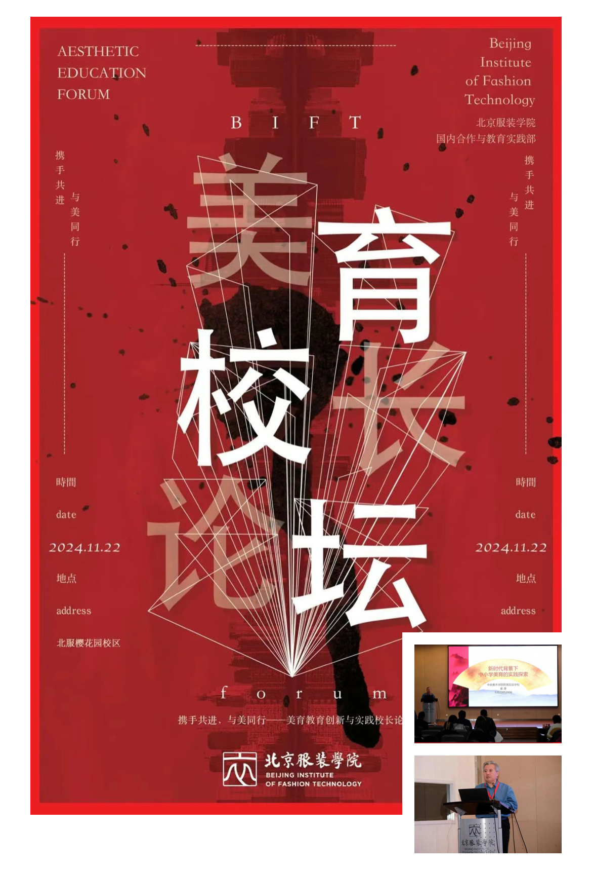 2024年11月22日由北京服装学院主办的“国际化视野下的中小学美育创新与实践暨北服生源基地建设研讨会”隆重举行,北京服装学院相关领导及来自全国各地的中小学美术特色学校的校长和老师参加了会议。会议主要探讨如何在全球化的背景下,借鉴国际先进的美育理念和实践经验,结合本土文化特色,构建具有全球视野和本土情怀的美育教育体系。