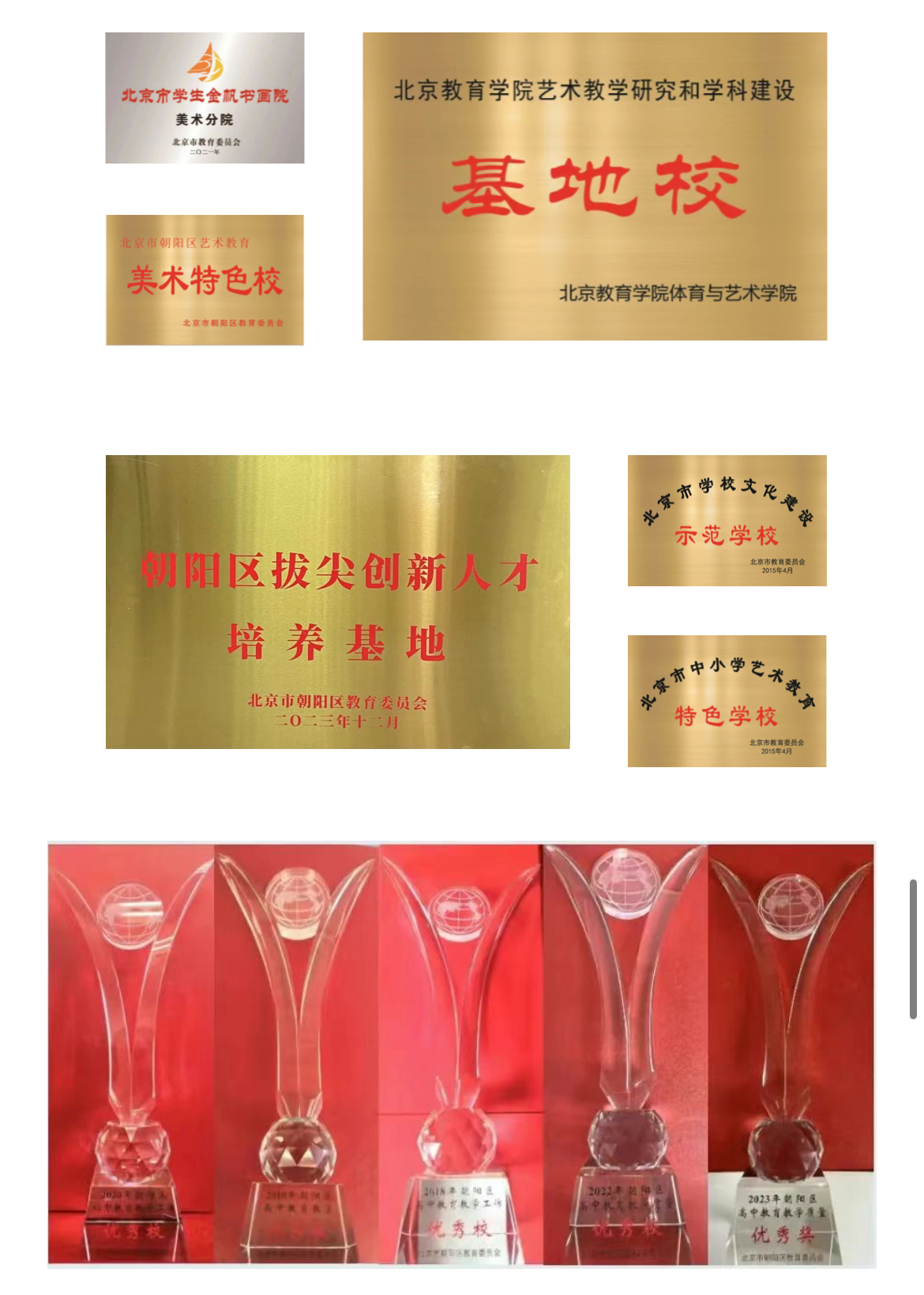 近年来学校的美育课程和课程体系建设日趋完善,被确定为北京市十四五教育科研规划课题,同时相关课程成果也被认定为北京市优质特色课程,相关获得了教育部国家教育教学成果一等奖,学校多次被评为北京市课程建设先进单位。在此推动下,学校的高考成绩也逐年攀升,每年都有一大批学生考入中央美院、中国美院等艺术类高校或北航、哈工大等双一流高校艺术类专业,连续多年获得朝阳区教育教学质量优秀奖,是朝阳区拔尖创新人才培养基地,特色办学成果丰硕,深受社会好评。